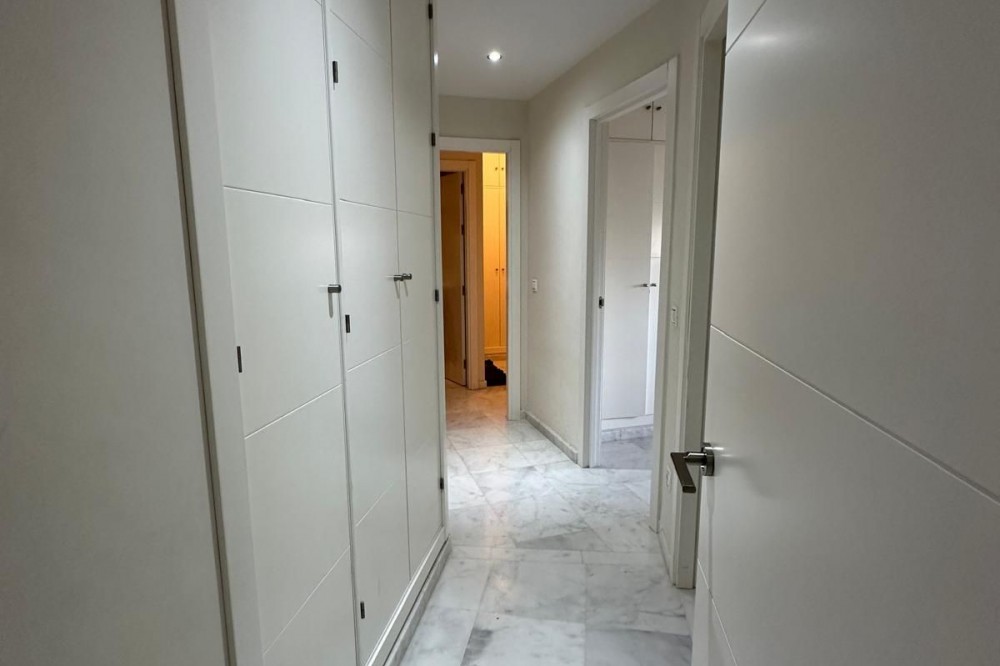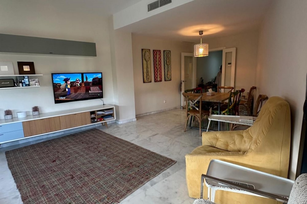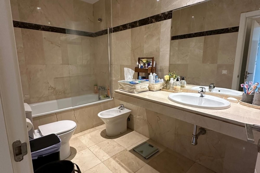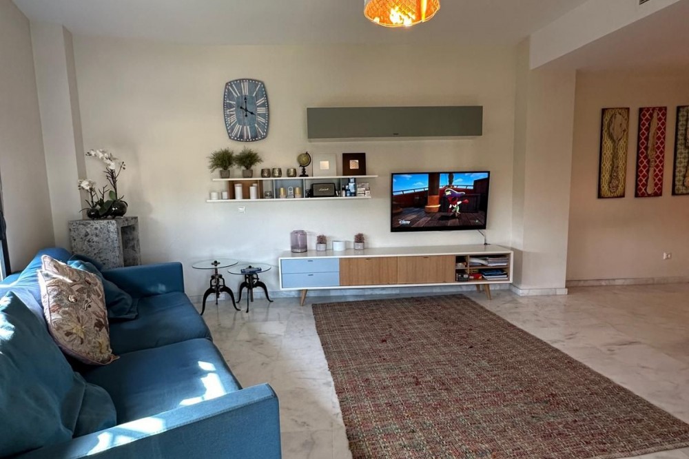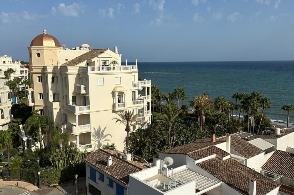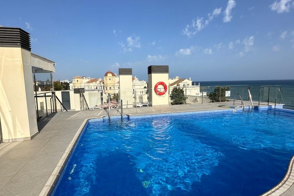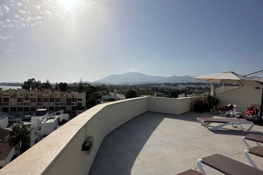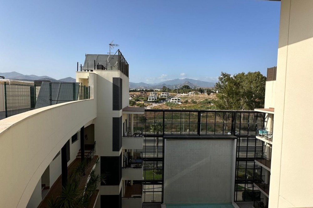 - "The apartment is located west of Marbella on the “New Golden Mile” few minutes from the lively marina of Puerto Banus and the more traditional town and beaches of Estepona. The building has a beautiful roof top infinity pool with views across to Africa. Close to all amenites and surrounded by 5 star resorts and public transport, this southwest beautiful ground floor apartment consists of a bright living and dining area with access to the terrace and the private garden. Three bedrooms with built-in wardrobes and two bathrooms, one en-suite. Fully equipped kitchen and laundry room. The apartment comes with an underground parking and storage room. Security in the compound, solar panels and only few steps to the beach and coastal walkway."