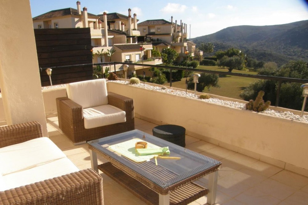- Lovely 3 bedroom duplex penthouse in San Roque Club Duplex penthouse with 3 bedrooms and 3 bathrooms in Mansions, featuring stunning panoramic views of the mountains and the golf course from the entire terrace. Spacious living-dining room with direct access to the southwest-facing terrace, ensuring excellent natural light throughout the day. Fully equipped and family size kitchen. Access to the garage, which includes two parking spaces and two storage rooms, is conveniently provided by an elevator. The development offers 24-hour security, a large communal pool, well-maintained gardens, and the exclusive San Roque Golf Club completes a luxurious lifestyle.