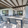- This elegant five-bedroom, south-facing luxury villa is situated in the prestigious Village Las Lomas de Magna Marbella complex on Marbella's Golden Mile. The complex offers 24-hour security service, two large community pools, and lush tropical gardens of exceptional beauty. The villa enjoys a prime location, close to all amenities, including supermarkets, shops, restaurants, schools, and golf courses, and is only a five-minute drive from the sea. The property spans three floors. The main floor features a spacious entrance hall, a living room with direct access to the terrace and garden, a well-proportioned kitchen, a dining room, a bright bedroom with an en-suite bathroom, and a guest toilet. The upper floor comprises the master suite and a guest suite, both with access to a large terrace with partial sea views. The lower level includes two additional bedrooms sharing a bathroom, a laundry room, a large multipurpose room, and direct access to the garage. Additional features include hot and cold air conditioning, underfloor heating, an elevator connecting all levels, a domotic system, and a private garage for two cars. Please note that the furniture is not included in the sale.