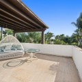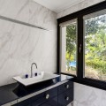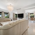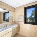 - Wonderful six-bedroom, southwest-facing luxury villa in Lomas de Magna Marbella, one of the most prestigious complexes on Marbella's Golden Mile. The villa is situated within a gated community that offers 24-hour security service, two large communal pools, and lush tropical gardens of incredible beauty. It is conveniently located close to all amenities, including supermarkets, shops, restaurants, schools, and golf courses, and is only a five-minute drive from the sea. This incredible property spans three floors. The main floor features an entrance hall, a spacious living room with direct access to a semi-covered terrace that includes tropical gardens with dining spaces and a chill-out area, as well as a private exit to the communal pool. There is also a bright bedroom with an en-suite bathroom, a well-proportioned kitchen, and a guest toilet on this floor. The upper floor has three bedrooms, each with an en-suite bathroom, and a sunny terrace with partial sea views. The basement comprises two additional bedrooms with bathrooms, a games room, a laundry room, a sauna, a hammam, and a garage with enough space for four cars. The house also has its own elevator. Please note that the villa is offered unfurnished, allowing you the opportunity to update and personalize it to your taste. The materials used in its construction and interior decoration are of the highest quality, reflecting the luxury of this property.