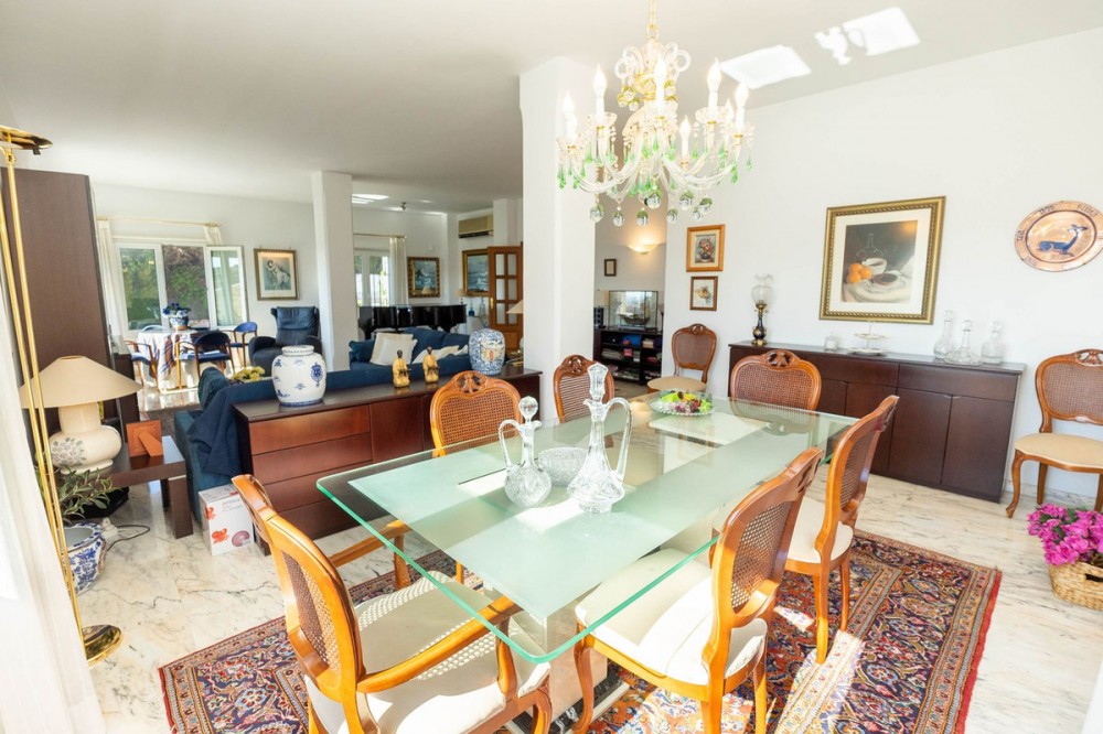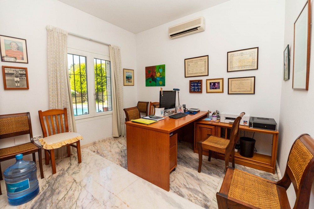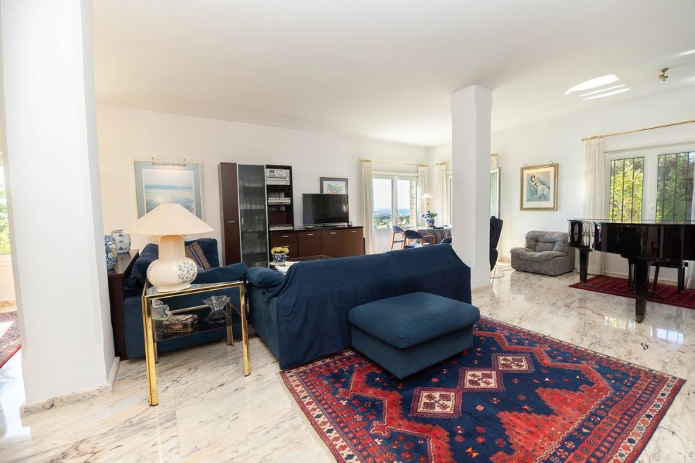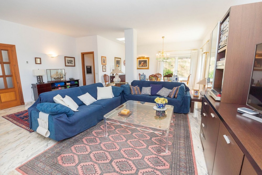 - Villa in private urbanisation, with spectacular sea views! High quality! 24 h. security. 4 bedrooms, private pool, garden, semi-basement with light with various possibilities such as gym, independent flat etc. .... Impressive Villa with all the comforts and maximum qualities located in the middle of nature and with impressive views to the sea from all the rooms, as well as from the swimming pool and gardens. Its location is privileged, very close to the private tennis club ‘Lew Hoad’ with quick access to the Mediterranean motorway and the A7. On the ground floor we have a spacious hall, from which we access a bedroom (currently an office) overlooking the pool and gardens. Large living room of approximately 80m2 with sea views and large independent kitchen with dining area and direct access to the living room from a secondary door. From the kitchen we access to a wonderful porch of approximately 100m2, situated next to the swimming pool. Upstairs there are three bedrooms which are double and almost triple the standard size. All of them have their own bathroom en suite. All the rooms and bathrooms are exterior, so they have plenty of light and ventilation. The master bedroom has a shower and hydro-massage bath in the bathroom. We also have a semi-basement, where we have all the machinery of the house (water softener, two water tanks of 3000L. each, pool motors, boiler to heat the whole house...). This semi-basement has windows and the possibility of opening the door, so that in its 175m2 there is the possibility of creating an independent flat (it has water and electricity for a bathroom and kitchen), a gymnasium, as well as a garage (which is its current function). In the exterior area we have a wonderful swimming pool with views to the sea, surrounded by gardens. The property also has a large entrance to the property and space to build a parking area for up to 4 cars. High qualities, both in construction and finishes, in this home have excatimado in putting all kinds of details to make life more pleasant:) German locks with 6x6x6 security glass, A/A with independent control in each room, first quality wood, first quality electrical appliances and sanitary ware, first quality marble floors, underfloor heating in the whole house and a great etc. .... This property offers quality, comfort, security and a privileged location with wonderful sea views! The essence of this house is not conveyed in our photographic report, so I invite you to request a visit, so you can see first hand what is special about this home. ibi 1.368 € community quarterly 185 € rubbish 142 €.