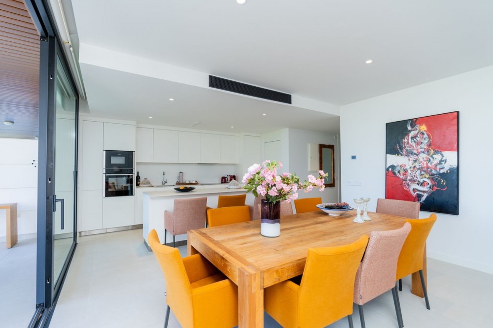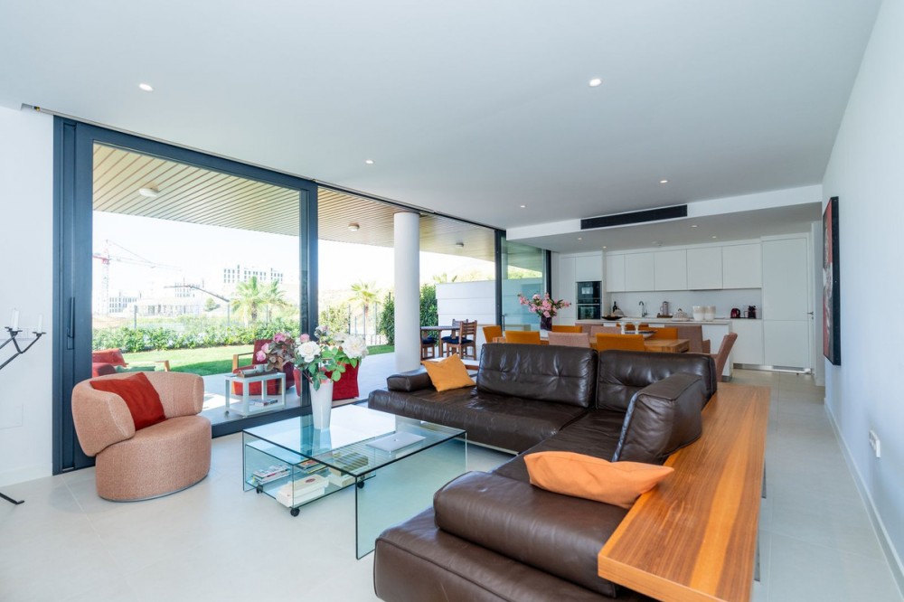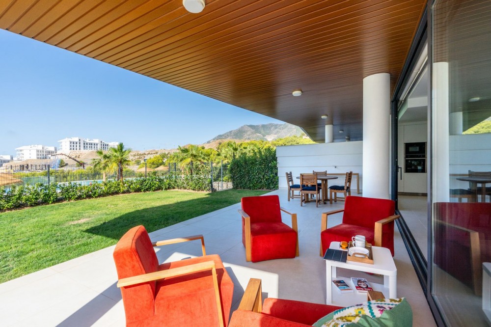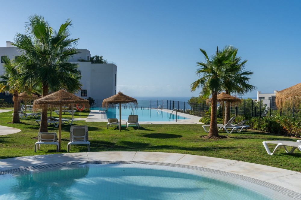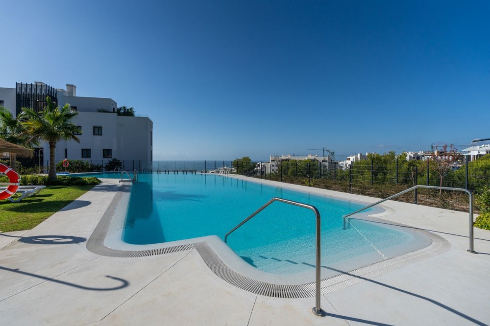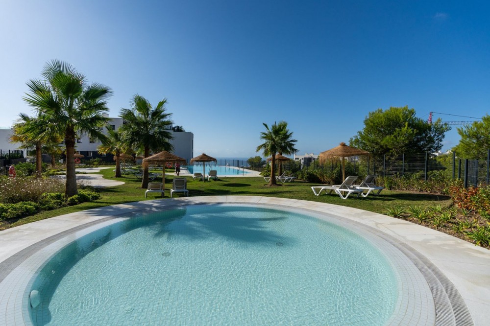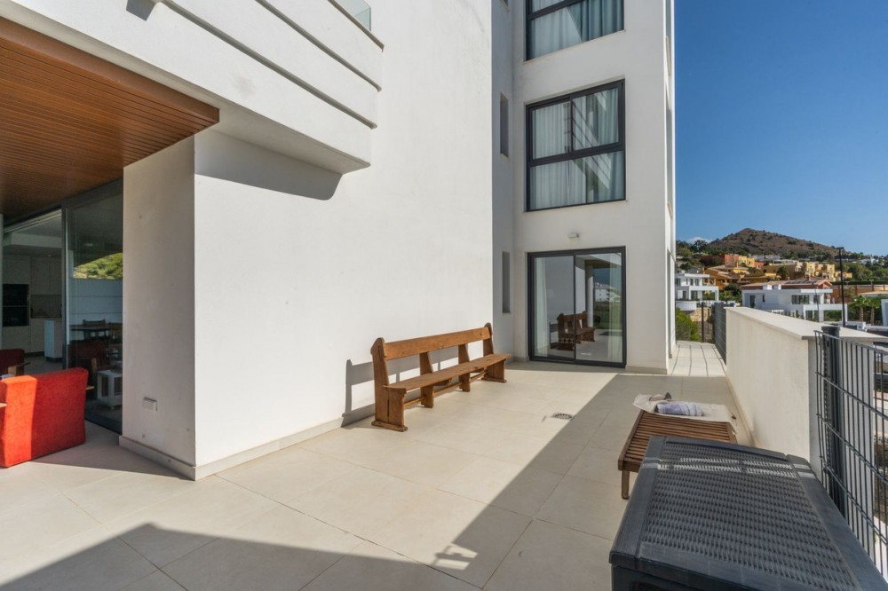 - For Sale: In the Higueron resort a brand new luxury and modern apartment built to a very high standard for 6 people with a large terrace facing east and south-west and beautiful sea, pool and mountain views. The Apartment The modern apartment is ideally located in the prestigious Higueron West community and has been designed to enjoy the Mediterranean lifestyle. Higueron West is a high quality, innovative and sustainable residential development situated on a green slope overlooking the Fuengirola coastline. This luxury brand new apartment has everything you need for wonderful living on the Costa del Sol. Surrounded by carefully landscaped gardens to create a sense of tranquility around the properties. The luxury modern apartments have been designed and furnished with attention to detail. The resort offers everything you need for a comfortable and relaxing living environment, including beautiful views. Step into a beautifully designed luxury and modern living space that seamlessly combines style and functionality. Inside, this spacious apartment enjoys plenty of natural light, elegant details and a modern open-plan design. The apartment has a sunny living room with adjoining spacious terrace facing east and southwest with sea views and a fully equipped modern open kitchen, complete with high quality appliances and elegant finishes. The large windows lead to a spacious terrace, perfect for outdoor living, suitable for relaxation and outdoor activities. The terrace is located all around the apartment, allowing you to enjoy the sun all day long. The terrace offers ample space to lounge and dine and enjoy the sunny Spanish days and enjoy breathtaking sunsets over the sea and the city. The large sliding doors provide easy access to the sunny terrace and also offer direct access to the luxurious adjacent saltwater swimming pool plus children's pool, you will experience peace and child friendliness here. The whole is situated in a subtropical garden surrounded by palm trees, sunbathing areas with sun beds and outdoor showers with views over the Mediterranean Sea and the mountains of Mijas. The apartment has three spacious bedrooms, each carefully decorated to offer a serene and relaxing atmosphere. The master suite has an en-suite bathroom with a spacious walk-in shower and a toilet in a closed room. The other two bedrooms share a modern, well-equipped bathroom with a walk-in shower and toilet. The bedrooms are equipped with built-in wardrobes and interior: drawer unit. In addition, the apartment is equipped with an extra toilet, a guest toilet. Experience ultimate comfort with air conditioning (hot/cold) throughout the unit, ensuring a perfect climate all year round. Fiber optic WiFi is available. There are two private parking spaces in the underground parking garage with elevator to the apartment. With 24-hour security and a gated area, you can enjoy your apartment and the tranquility of your new home with peace of mind. In the area there are numerous facilities for a healthy and active lifestyle. Modern landscaped cycle paths and walking paths through nature and throughout the residential area. Playgrounds for children, a park for pets, grounds for organic plantations, a shuttle service to the beach and parking spaces for electric cars and bicycles. The apartment is located close to the motorways to Malaga airport (within 15 minutes) and Marbella (within half an hour). The nearby beach of Carvajal is renowned as one of the best on the Costa del Sol, with paths leading to Benalmadena and Fuengirola. While you are there, visit Beach Club Higueron or one of the many excellent restaurants on the beach. And for golfers, this area is a dream, with an abundance of golf courses in the area. Live, work, play Here you can take advantage of the extensive on-site facilities, including a mini-shop, sports facilities, a spa and exceptional dining options. Higueron West includes a modern co-working business centre with concierge service. The apartment has an official rental license. Whether you choose the unfurnished option or the convenience of a fully furnished apartment, the choice is yours. This apartment offers not just a home, but a destination where dreams become reality. Contact us today to not miss your chance to own this piece of paradise on the Costa del Sol. More information about the Higueron resort AMENITIES: Within the urbanization, 350 meters from the apartment, you will find the Nagomi Spa and sports center Reserva del Higueron. Here you can enjoy (for a fee) tennis, paddle, spinning, wellness spa, gym, massage, indoor and outdoor swimming pool