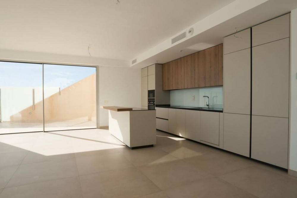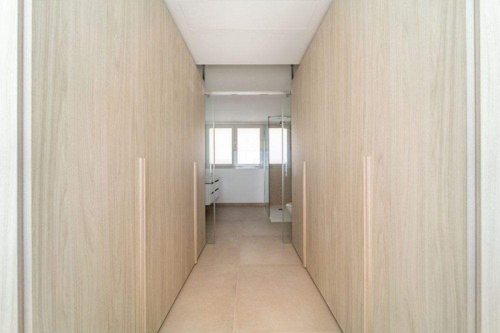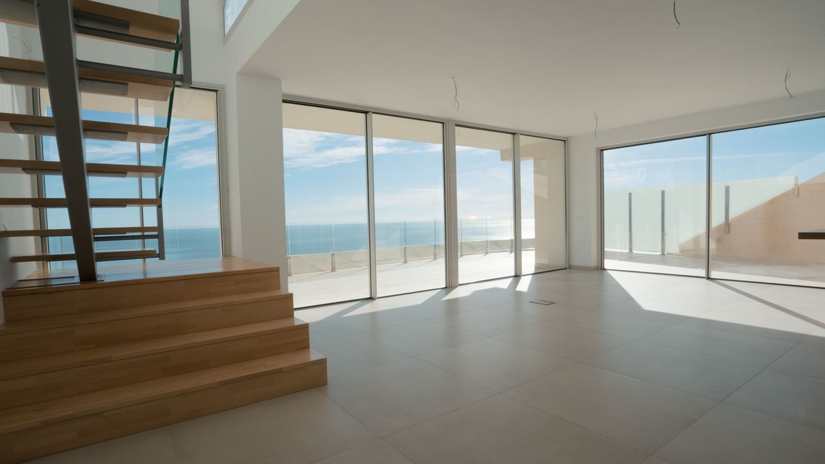 - Brand new south facing penthouse duplex, located in the exclusive urbanization of Stupa Hills. The property consists of hall, 3 bedrooms with built-in wardrobes and electric blinds, bathroom and guest toilet, open plan kitchen fully furnished and equipped with electricial appliances from Siemens. Spacious living-dining room that leads out to a terrace of 65m2 with panoramic sea views, the Fuengirola Bay and of the Buddist Temple. On the top floor is located the main bedroom with walk-in closet, ensuite bathroom and laundry area. The bedroom leads out to a terrace of 21m2 with panoramic sea views. Air conditioning hot and cold with Airzone, video intercom, domotic system, pre-installation alarm system. Includes two parking spaces and one storage room.
