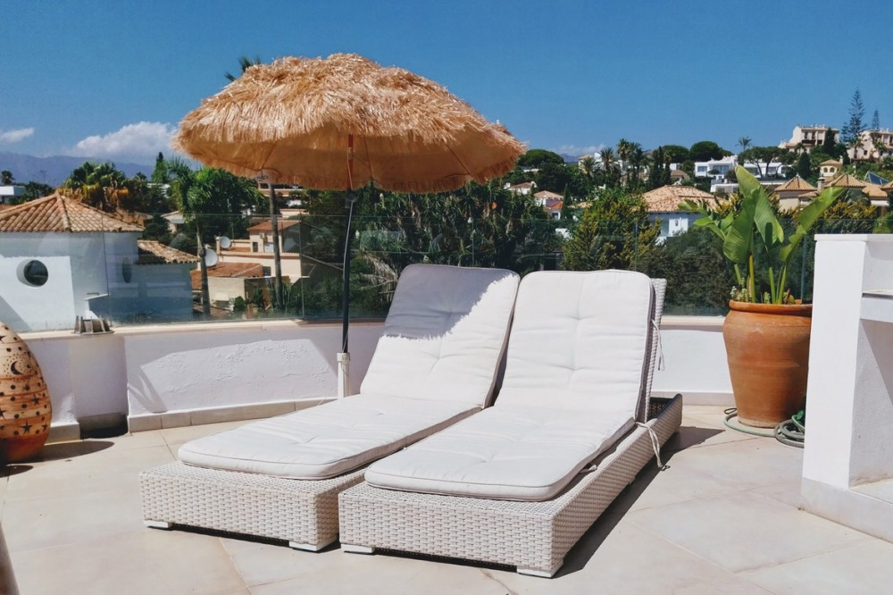 - New Development: Prices from €1,595,000 to €1,595,000. [Bedrooms: 3] [Bathrooms: 2] [Built size: 309m2]. This iconic villa is located in the private urbanization of Marbesa, close to the beach, on the east side of Marbella. It is 400 meters walking distance or 10 minutes walk from the Mediterranean Sea and the beach, 1.5 km from the beach and the protected dunes of Cabopino and 1.9 km from the hotels Marriot and Don Carlos and Nikki Beach Marbella. Marbesa is a quiet and prestigious neighborhoud known for its beautiful coastline and its proximity to Marbella. The villa has 3 bedrooms and 2 bathrooms and is recently built and offers a perfect mix of modern living and luxurious comfort. The villa has a beautiful roof terrace with swimming pool with views over the coast to Gibraltar and Africa. It is ideal for organizing parties or simply enjoying the breathtaking views. The first floor, where you will find the living room with open kitchen, also offers fantastic sea views. On the ground floor, which overlooks the garden and the infinity pool, there are 2 bedrooms and 2 bathrooms. In the semi-basement there is a 3rd bedroom and the garage with a remote controlled electronic gate. All bedrooms have shutters, air conditioning and heating, on electricity. Both the roof top pool and the pool in the garden are heated. This villa is an ideal family home and also perfect as a rental investment. It has a proven track record as a very successful holiday rental (with license number). The total plot size is 400 m2. The total built area is 309 m2, of which 167 m2 living space, 108.5 m2 terraces and 33.5 m2 swimming pools. Garden, pools and villa are easy to maintain.
