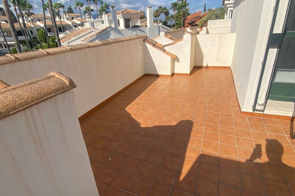 - !!! NEW ON THE MARKET!!! Beautiful four-story townhouse, with three large rooms, located in the La Reserva de Atalaya urbanization made up of 20 semi-detached homes. Magnificent urbanization, with two large community pools, one for the little ones and the other for adults. Lush and very well maintained gardens. Ideal to enjoy the Mediterranean climate. In addition, it is located a few kilometers from Puerto Banús and Marbella, as well as the prestigious golf courses in the area. As for nearby services, there is a playground nearby, public transport, close to the beach by car, and the proximity of a private school less than 10 kilometers away. You can also find a shopping center nearby. The urbanization is known for its tranquility and charm. Surrounded by nature and close to everything you need, it is the ideal place to enjoy a relaxed and pleasant life. In addition, the proximity to Puerto Banús and Marbella offers a wide variety of leisure options, restaurants and luxury shops. On the ground floor we will find a private parking with the capacity to store two vehicles and at the same time a storage room. The next floor is distributed by a guest toilet, an equipped kitchen and a large living-dining room that connects to a private terrace. On the next floor we find 3 large bedrooms, each room has its own private balcony, with two bathrooms. The main room has its private bathroom, while the two other rooms share the other bathroom. On the fourth floor we already find a private and sunny solarium. Some neighbors have closed it and built another room. This great opportunity is perfect to be a family home or a great investment as it has a lot of potential. Thank you for reading our property.