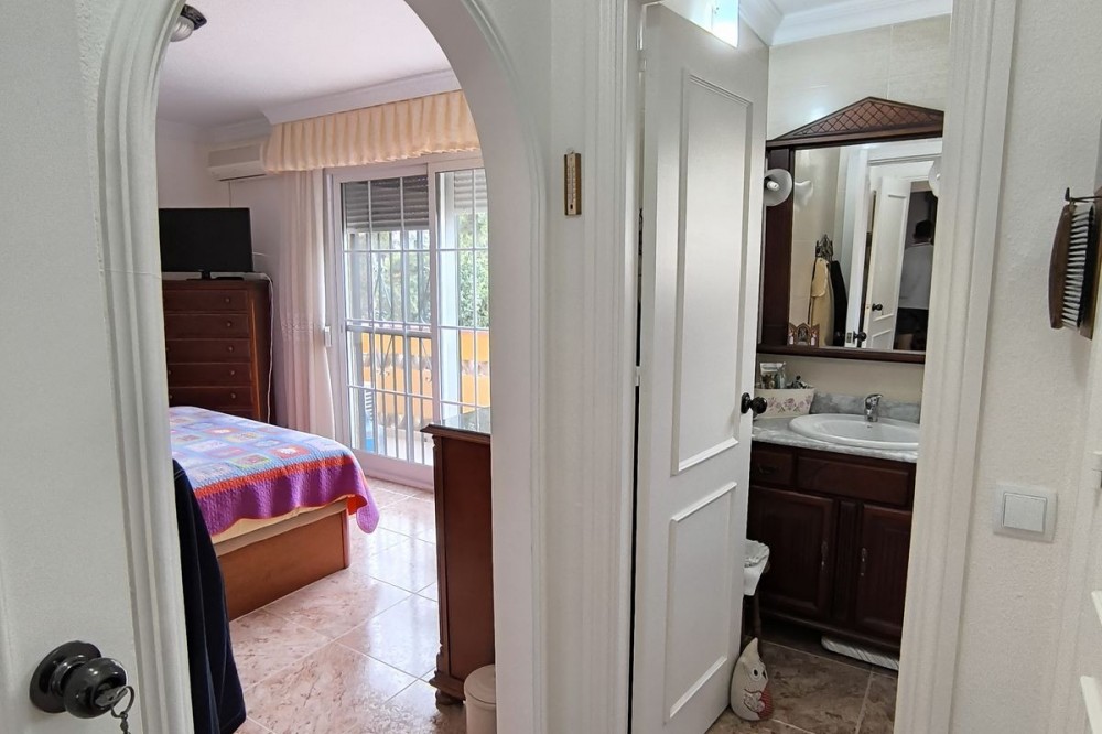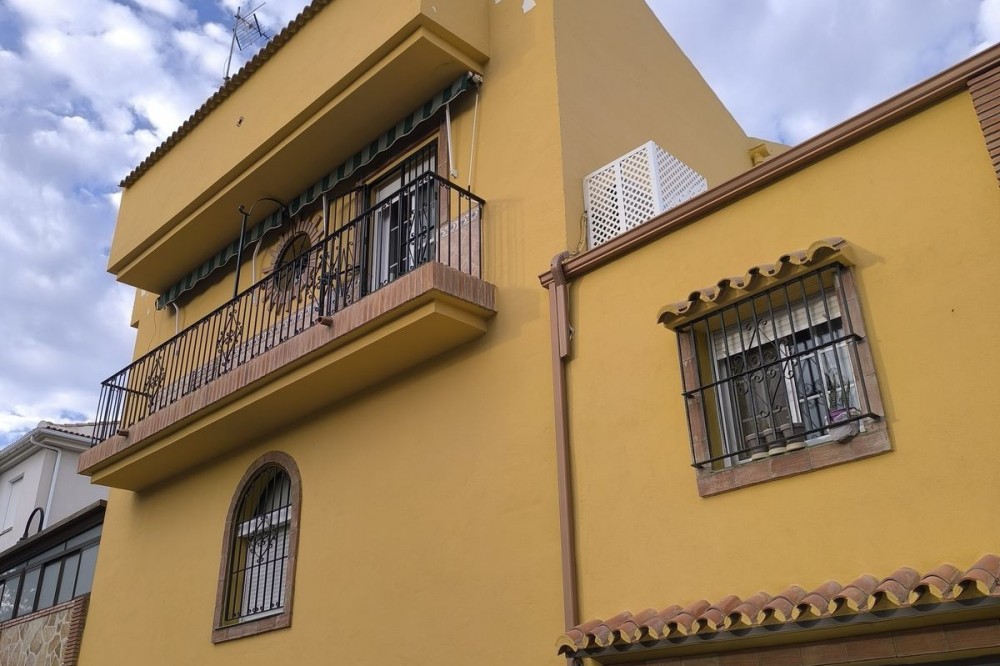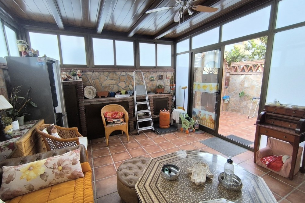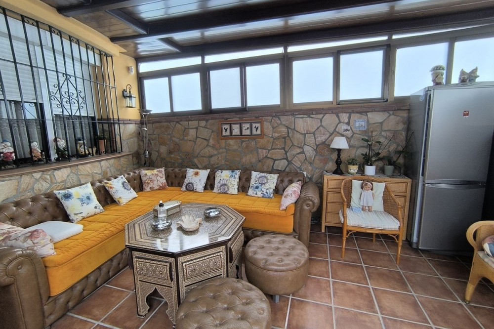 - Townhouse in the heart of Las Lagunas de Mijas, in the Doña Ermita area. Discover your new home in Las Lagunas de Mijas! This charming townhouse in the Doña Ermita area offers you everything you need for a comfortable and elegant life. With 170 square meters built, this house has been completely renovated, highlighting its stone facade and high-quality tiles. It has three large bedrooms with built-in wardrobes, two full bathrooms and an additional toilet, ideal for families or for receiving visitors. The living room is perfect for enjoying family moments, and it has closed terrace that offers additional spaces for relaxation. The house has two kitchens, which provides great versatility when preparing your favorite dishes. In addition, the closed 35 square meter garage ensures that your vehicle is always protected. Located in a strategic area, you will be close to shops, supermarkets, restaurants, health centers and schools, making your day-to-day life easier. Don't miss the opportunity to visit this real estate gem!