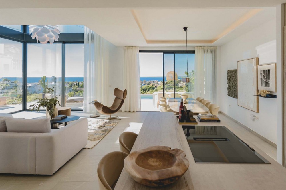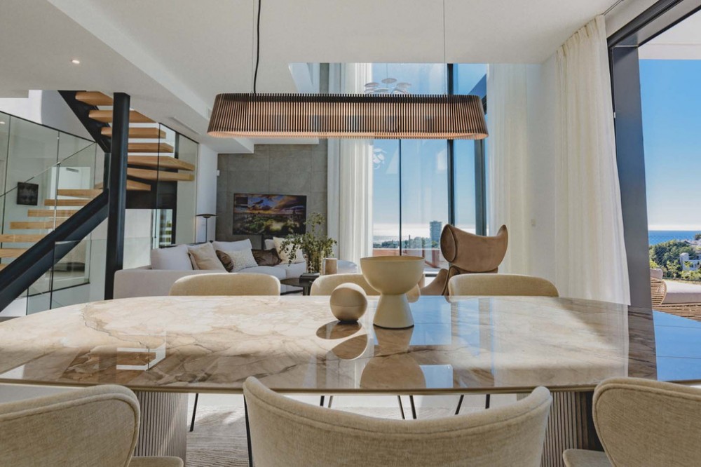 - New Development: Prices from €1,675,000 to €2,080,000. [Bedrooms: 4] [Bathrooms: 5] [Built size: 280m2]. A community of 27 opulent semidetached homes with expansive rooms, private gardens, swimming pools, and prime sea views can be found in Marbella at this residential. Because to its multi-level construction, you can take in the breathtaking views of the Mediterranean. The complex features a variety of amenities, including a huge garden-surrounded outdoor pool for public use, a gym, a sauna, a Turkish bath, a massage room, and paths for house access. The upper floor of the townhouses features a private swimming pool and a sundeck. There are two types of residences available for selection: four and five-bedroom houses that are located in basements, ground floors, first floors, and solariums with swimming pools. Every house has a subterranean garage. High-end finishes are used in the interior design. Because of the huge windows and roomy layout, your home is filled with light and natural elements, allowing the exterior and interior to seamlessly blend together.