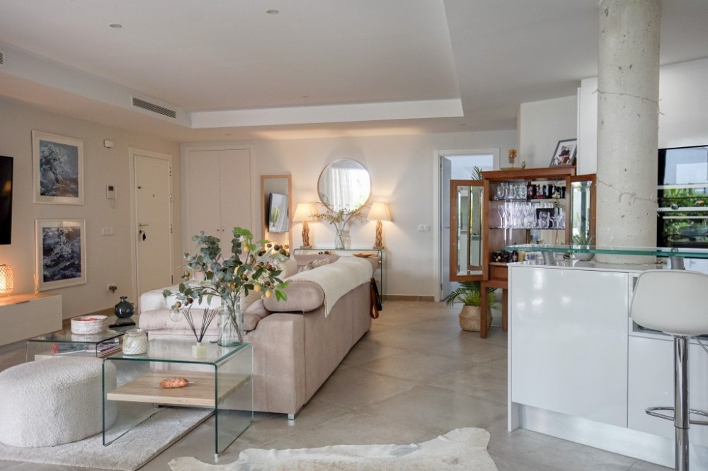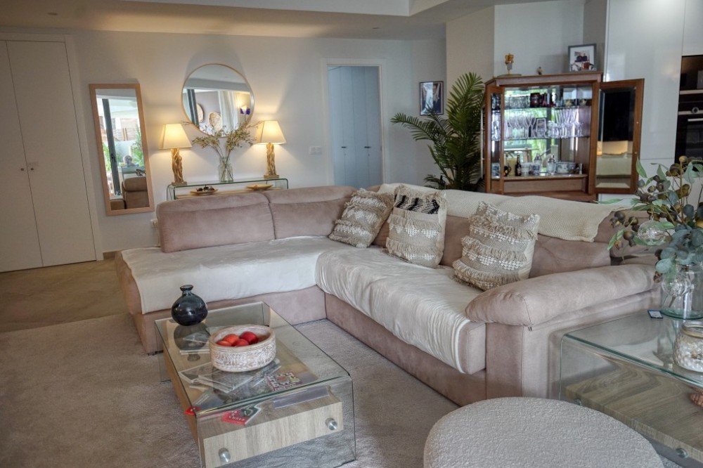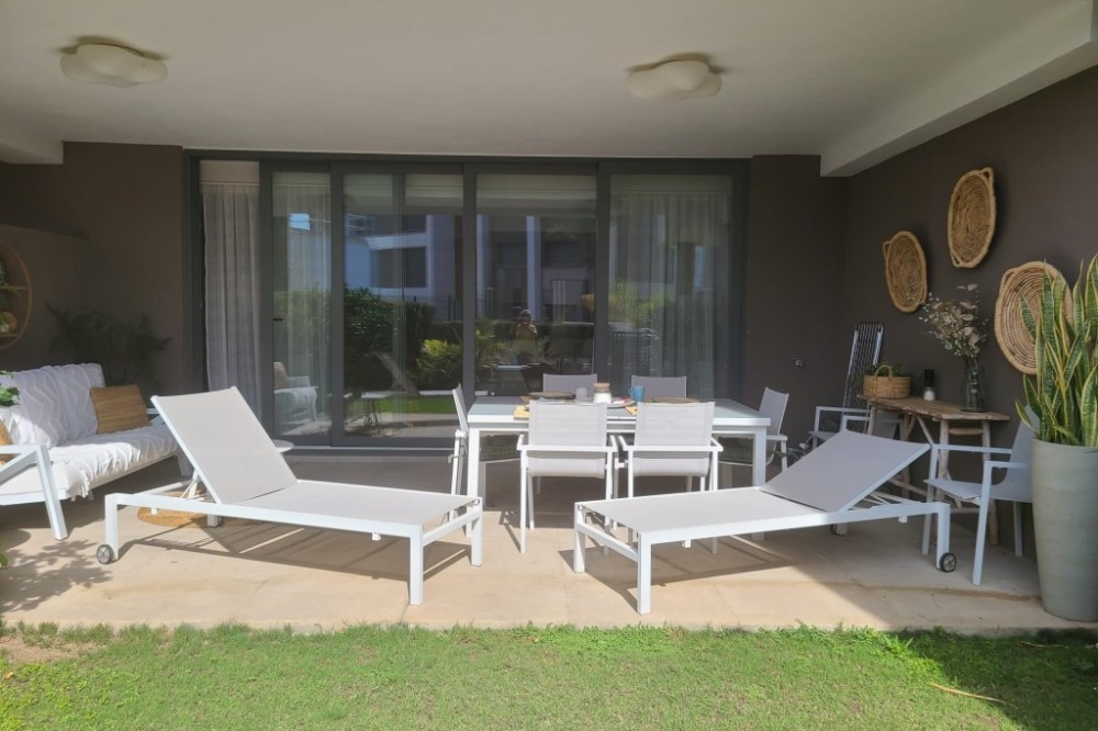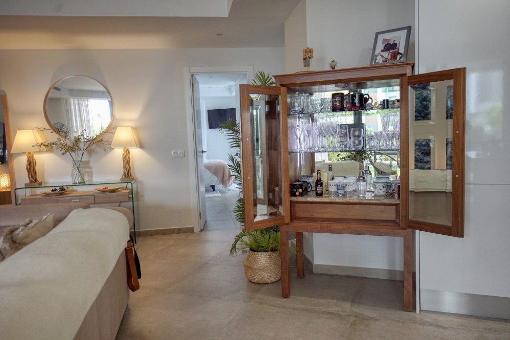 - Discover this beautifully presented, furnished 2 bedroom 2 bathroom garden apartment that offers exceptional living. Enjoy bright, extra spacious interiors with an open plan kitchen, dining and living area that seamlessly transitions to a large covered terrace and sunny , south facing garden - perfect for outdoor dining and relaxation. Key features, 112m2 usable living space, large covered terrace of 25m2 plus private uncovered garden with direct access through a gate to the beautifully landscaped pool area. Contemporary finishes throughout, including upgrades to hansgrohe shower , soft close features on all wardrobe doors and glass breakfast bar. Fully equipped kitchen, 2 double bedrooms with ample built in closet space, 2 full bathrooms , one en-suite. Convenient location, Just a short walk to a variety of restaurants, bars. shops, banks, and the beach. Wonderful accessibility, only 5 minutes drive to Estepona town and 5 minutes to San Pedro, this apartment is a must see for anyone looking to blend luxury with convenience. Keys in office for easy viewings, don't miss your chance to experience this wonderful property!