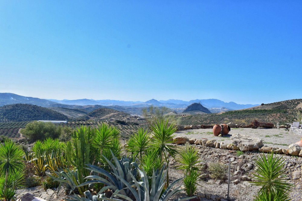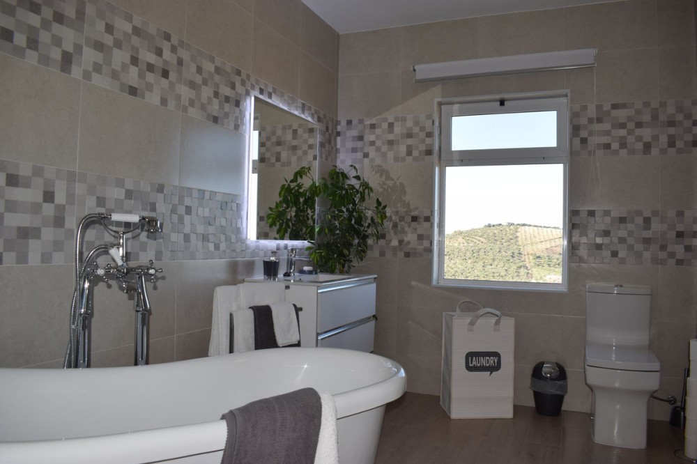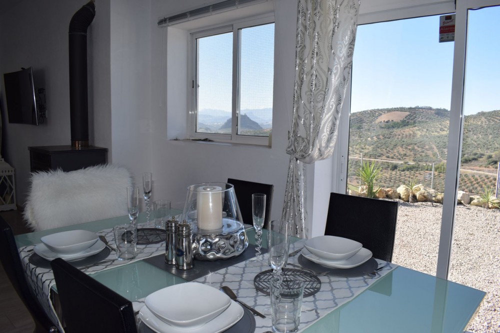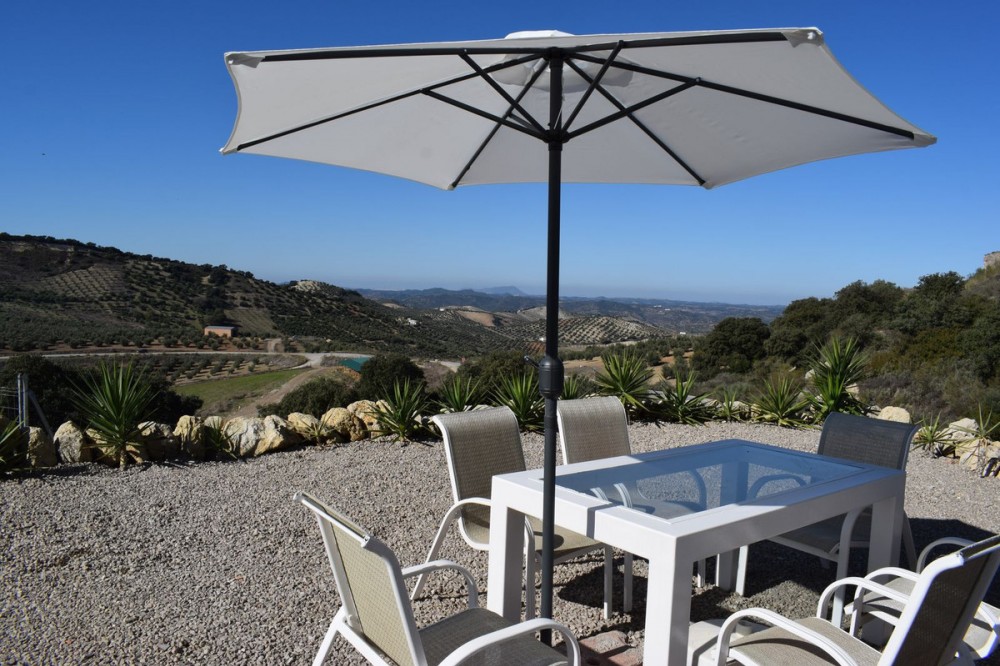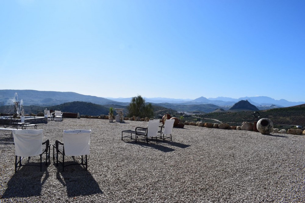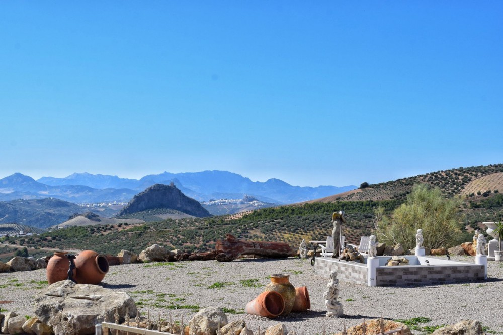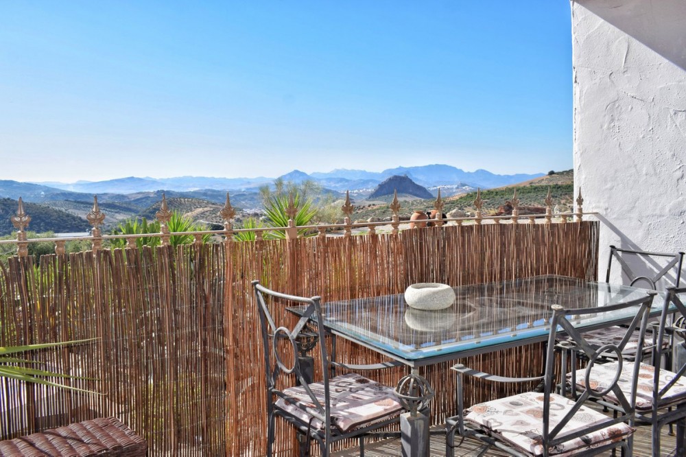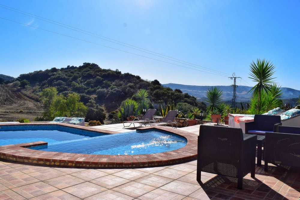 - Incredible Cortijo 1h away from Ronda, a fabulous family home and rental business. The current owners bought this 25,000 m2 Rancho in 2005 when it was a complete ruin. Since then they have re-built and reformed, regardless of cost. All properties and outbuildings are now presented to a high standard, fully insulated with all new doors, double glazed windows and patio doors, etc. The main house being a 4 Bedroom, 4 Bathroom (All En-Suite) which the owners call home. Air-Con/Heating, Emergency Lighting, Alarm Connected to central, fully equipped kitchen, utility room, 2 living room areas both with wood burning fires, large patio area with a Gazebo a fountain and a palladium porch with bedroom balcony. Fantastic views in all directions. this house is separate from the rental properties. The holiday rental business is very successful and has given the owners a very nice income. It consists of one 120 m2 Villa with private pool and large patio area. 1 Apartment of 110 m2 Approx. with private pool and large patio area. Both have 2 bedrooms, 2 bathrooms (1 En-Suite) kitchen, living room/diner, air-Con/heating and Sleeps up to 6 Persons. 1 Apartment 110 m2 Approx. With 2 Bedrooms, 2 Bathrooms (1 En-Suite) American Kitchen/Living Room/Diner, Air-Con/Heating and sleeps up to 4 Persons. All properties are fully equipped for rentals, all furniture/fittings are included in the sale, so you can carry on with the rentals. There is a large 120 m2 approx. indoor patio with open log fire, ideal for winter parties, meetings and seminars etc. There is also an existing ruin on the land with planning permission in place for a 3 bedroom, 3 bathroom house with a pool in a separate part of the Rancho, this house would have its own entrance. The Ranch is south facing, has mains water plus private water with storage of 50,000 Litres, mains electricity and solar power. They have tourist board licence for casa rural and a farm licence for horses, sheep etc It is fully fenced with electric gates, very private and secure, in the beautiful countryside with fantastic views, only 2 Kilometres from the nearest village.
