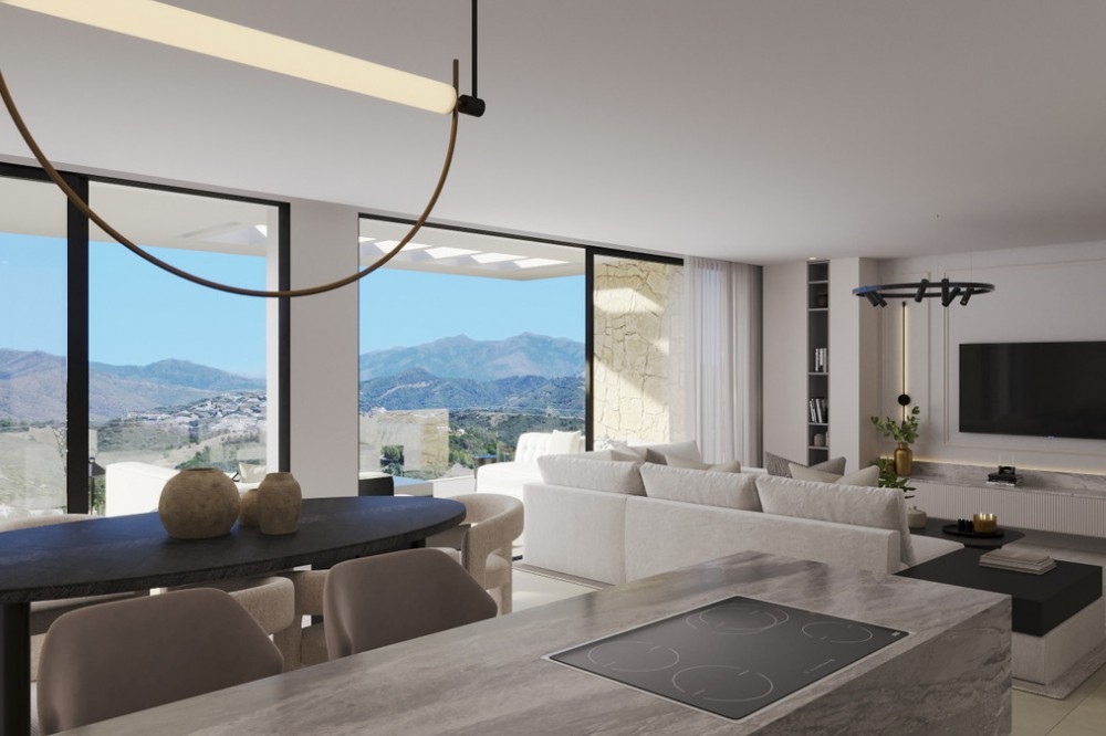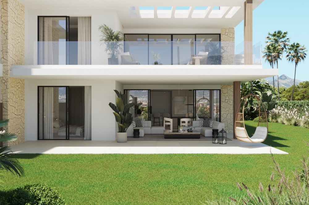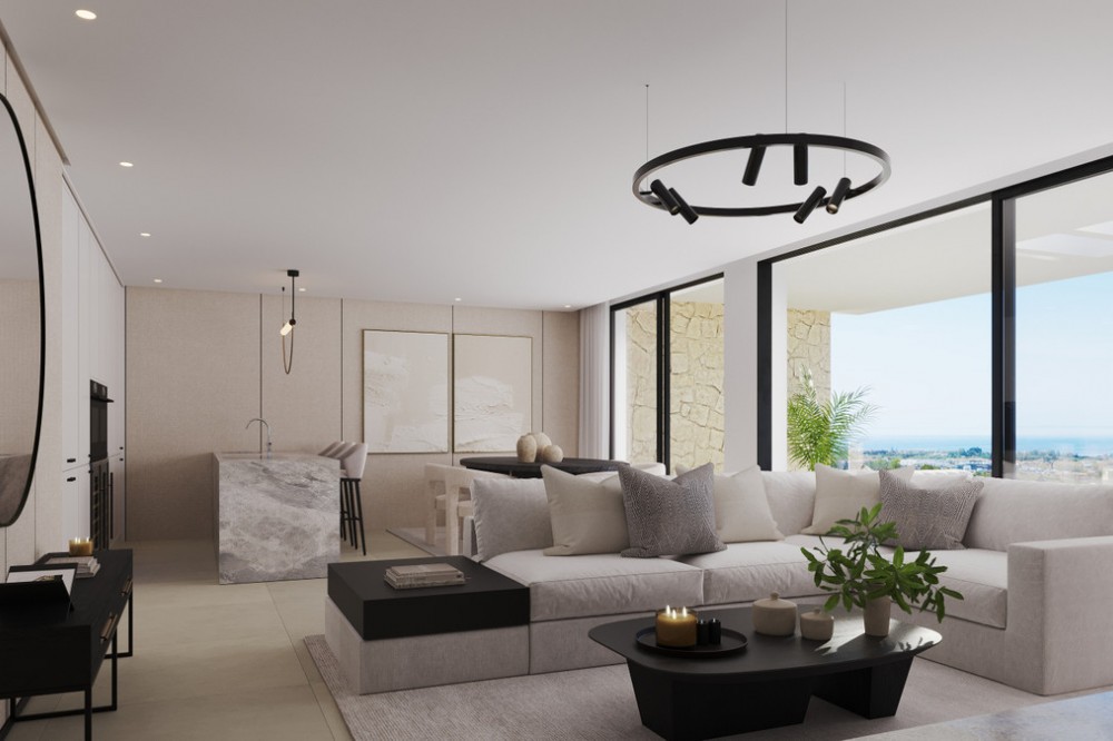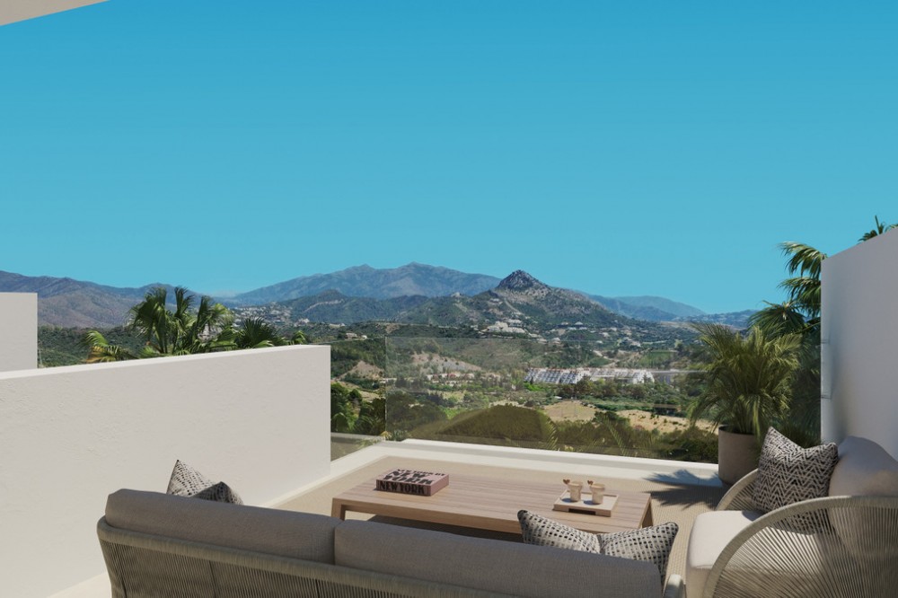 - New Development: Prices from €645,000 to €645,000. [Bedrooms: 2] [Bathrooms: 2] [Built size: 118m2]. Luxury gated development of 72 apartments and penthouses, designed by the renowned architects Villarroel. Established over 50 years, the architectural concept is seamless integration of architecture with nature. This exclusive complex of 2, 3 and 4 bedroom luxury apartments is located within in an area of outstanding natural beauty, where each property benefits from spectacular sea and mountain views. Each apartment has a spacious open-plan layout and a large terrace for you to enjoy al-fresco living. You will also enjoy 2 communal outdoor pools, indoor pool, fully equipped gymnasium, sauna, hammam, golf practice area, beautifully landscaped gardens and 24 hour security.