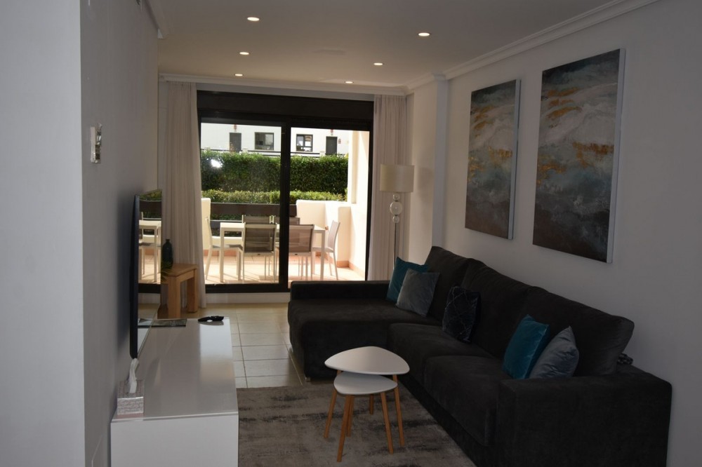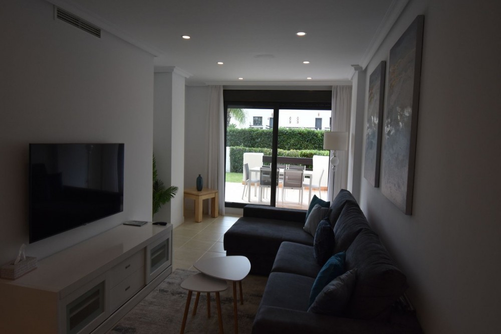 - STUNNING APARTMENT IN ESTEPONA!!! This modern 2 bedroom, 2 bathroom apartment is set in a beautiful urbanisation in Estepona. There is a large terrace from the lounge area for you to sit out in the warm Spanish climate and a gate from here leads you to the communal pool area. The space The urbanisation is located within the La Resina Golf and country club complex in Estepona, Spain. The course has 9 holes, par 3 and 4 and offers both Amateurs and Professionals an entertaining round. It was constructed in 2005, is 1800m long and the groundsmen have kept the course to high standard. The course has magnificent landscaping and leads through lakes and tropical gardens. It is considered one the best 9 holes on the Costa del Sol. The complex has a lovely communal swimming pool with sun loungers, and there is underground private parking with a lift that takes you straight to the apartment. Ground Floor Apartment, Estepona, Costa del Sol. 2 Bedrooms, 2 Bathrooms, Built 0 m². Setting : Town, Close To Port, Close To Sea, Close To Marina, Urbanisation. Condition : Excellent. Pool : Communal. Views : Garden, Pool, Courtyard. Features : Covered Terrace, Lift, Fitted Wardrobes, Private Terrace, Storage Room, Ensuite Bathroom, Access for people with reduced mobility, Double Glazing, Fiber Optic. Furniture : Fully Furnished. Kitchen : Fully Fitted. Garden : Communal. Security : Gated Complex, Entry Phone, Safe. Parking : Underground, Street, Private. Utilities : Electricity, Telephone. Category : Bargain, Golf, Holiday Homes.