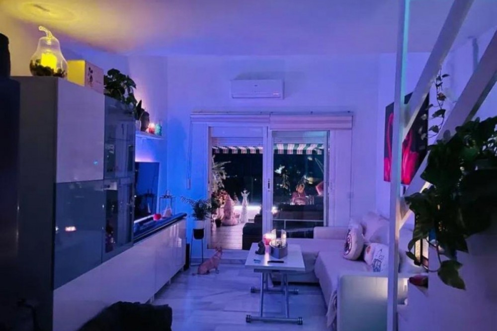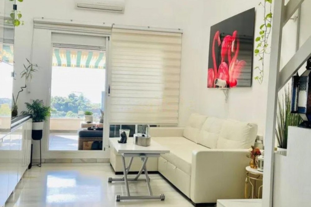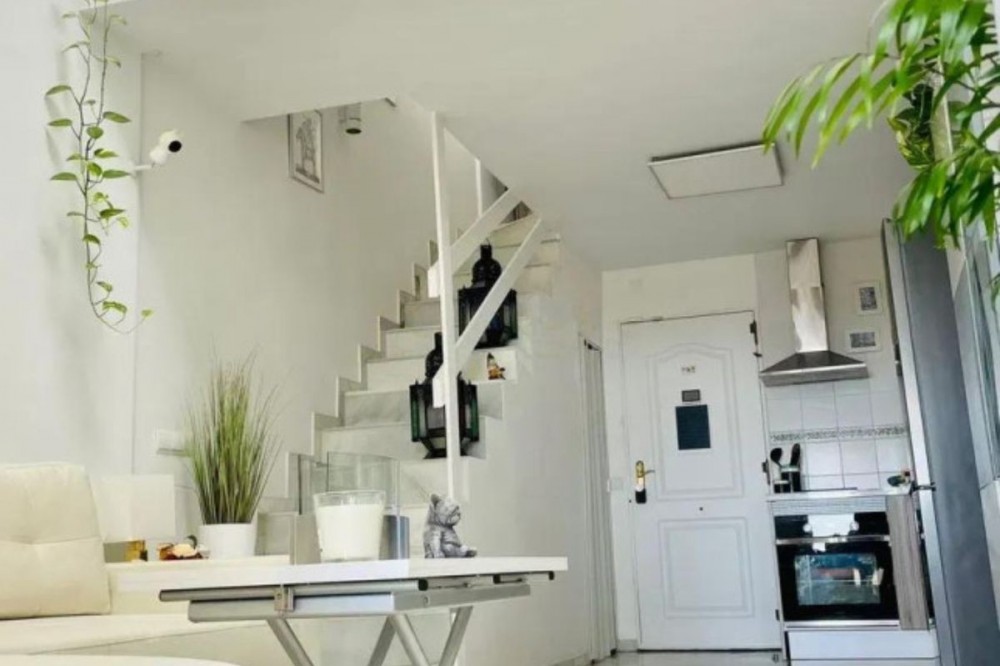 - Beautiful duplex. The apartment consists of a kitchen-dining room, the kitchen is fully equipped and the living room is fully furnished with a sofa bed and air conditioning with a heat/cold pump. Upstairs we have the attic room connected to the living room and a fully equipped bathroom. The house has a 14 m2 terrace with unbeatable views of the mountains and the sea where you can relax.. . It also includes a private parking space within the urbanization and a 5 m2 storage room. The apartment is sold fully furnished!", Estepona, Costa del Sol. 1 Bedroom, 1 Bathroom, Built 62 m², Terrace 14 m². Setting : Urbanisation. Orientation : South. Condition : Excellent. Pool : Communal. Climate Control : Air Conditioning, Hot A/C, Cold A/C. Views : Sea, Mountain, Panoramic. Features : Covered Terrace, Lift, Fitted Wardrobes, Private Terrace, WiFi, Gym, Games Room, Storage Room, Marble Flooring. Furniture : Fully Furnished. Kitchen : Fully Fitted. Garden : Communal. Security : Gated Complex. Parking : Underground, Garage, Covered, Private. Category : Resale.