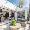 - Luxury beach bungalow in Oasis Club, this emblematic beachfront community on the Golden Mile of Marbella. This house has all the living accomodation on the ground level together with a large private terrace with direct access from the living room plus another terrace upstairs with wonderful sea views. Total built area is 189 sq.m. The house has just been completely refurbished using only the best quality materials resulting in a very stylish and elegant finish. A mediterranean exterior with a scandinavian feel in the interior! It is the perfect residence for someone who demands quality living in an A1 location. This beach front bungalow style townhouse is literally a few steps from the sea, located in the Oasis Club urbanization. A residential area on the Golden Mile that has a privileged location on the seafront and has a great beach club within the community. This complex is very close to all the services and leisure areas of the Golden Mile and has direct private access on to the beach and the promenade from where we can take a pleasant walk until we reach Puerto Banús to one side and Marbella towards the other side passing by the Puente Romano and Marbella Club Grand Luxury Hotels and their respective well-known restaurants.