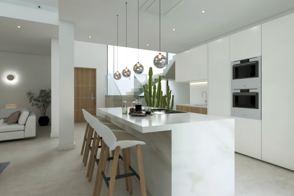 • New Development: Prices from €960,000 to €960,000. [Bedrooms: 4] [Bathrooms: 3] [Built size: 265m2]. 9 magnificent modern detached villas of high quality on plots of approx. 600 m² with 4 bedrooms, all en suite, guest toilet, spacious living-dining-kitchen, private swimming pool, private natural garden and private parking for 2 vehicles. These villas will have the A+ standard in energy efficiency. The area in which they are located is perfect, 150M FROM THE BEACH!... In addition, they have excellent communications and a wide variety of services such as supermarkets, restaurants, cafes, pharmacies, health centers, public transport, local stores, gyms, tennis courts, etc... COMPLETION TIME: 14 MONTHS!!!