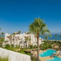 - Stunning Beachfront Penthouse located on the New Golden Mile, Estepona Discover this fully renovated 3-bedroom, 3-bathroom penthouse in an exclusive luxury development, right on the beachfront between Marbella and Estepona. This elegant home offers 154 m² of living space plus a 203 m² terrace with spectacular sea and mountain views. Designed with a modern open layout, it features high-end finishes, luxury furnishings, and an elegant rooftop terrace perfect for dining, relaxing, and entertaining. Highlights: Prime frontline beach location, walking distance to town Southwest facing with stunning sunsets Rooftop terrace with Jacuzzi, sauna, dining & lounge areas Modern kitchen with double dishwasher, wine fridge & Thermomix Dumbwaiter from kitchen to roof terrace Bang & Olufsen sound system and electric fireplace Underfloor heating in bathrooms, hot & cold A/C Ensuite bedrooms with fitted wardrobes and luxury finishes Lift access, storage room, and 2 underground parking spaces Community Features: Gated complex with 24/7 security & reception Large communal pool with snack bar Tropical gardens and direct access to the beach This is a rare opportunity to own a turnkey luxury penthouse on one of the best locations on the Costa del Sol.