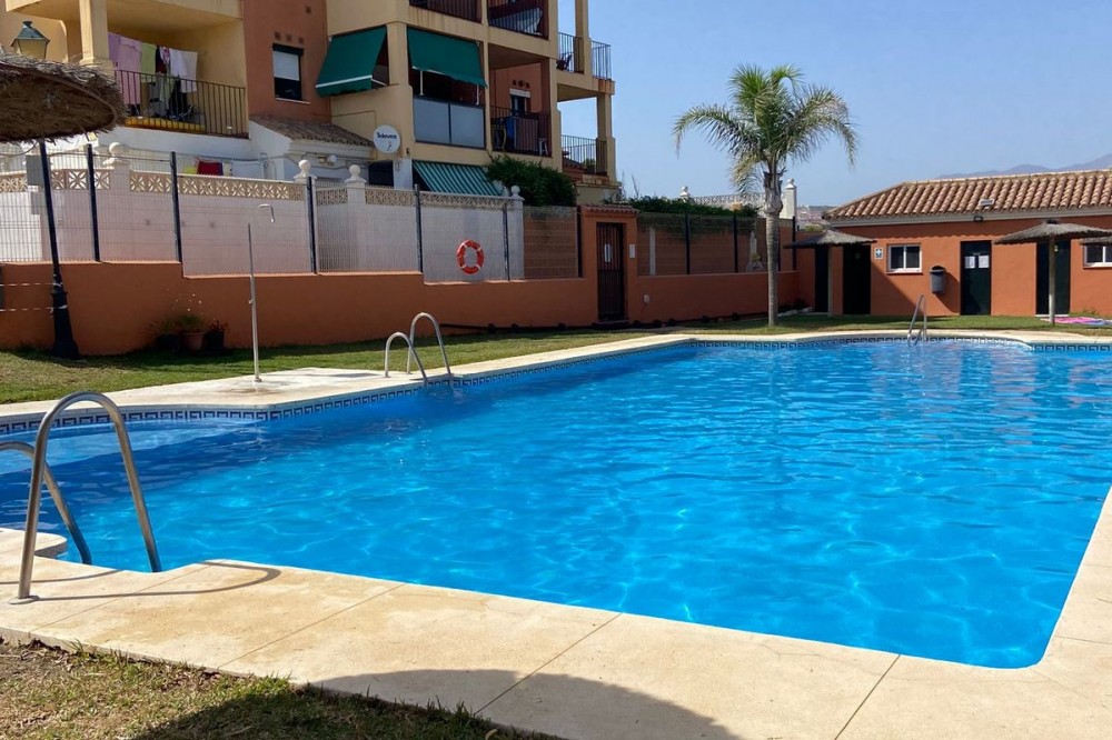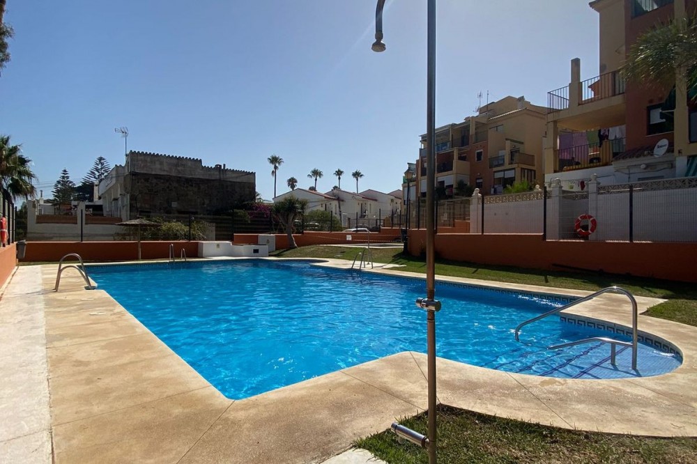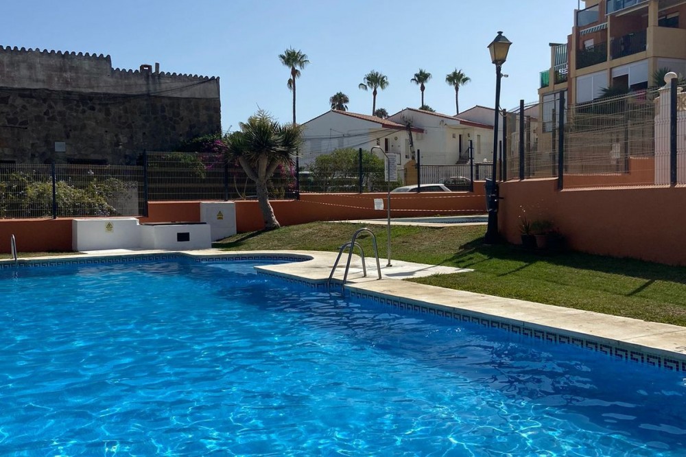 - A fantastic two bedroom, one bathroom beachfront apartment situated in an urbanisation with pool and sea views, only three minutes walk to the beach and within walking distance to the port of Duquesa. The apartment is situated on the 1st floor, it features a spacious terrace with nice sea views. The living room is separate from the kitchen, the apartment features two big double bedrooms with fitted wardrobes. The supermarket is within walking distance, the Duquesa port will take you fifteen minutes walk, or on a bicycle ten minutes maximum. It will only take five minutes to drive to Puerto Duquesa with a huge selection of restaurants inside the beautiful harbour on the front line port built up like three floors full of cafes restaurants and bars. Amazing sea views off the port. The urbanisation is twenty-five minutes drive away from Estepona, thirty minutes from Marbella via the highway, and twenty minutes drive away from Puerto Banus. Five minutes drive from the famous La Chullera Beach and fifteen minutes drive from Sotogrande which features special beach bars with lots of entertainment. The apartment is eighty minutes drive from the port of Malaga via the highway, or twenty minutes drive from Gibraltar airport.