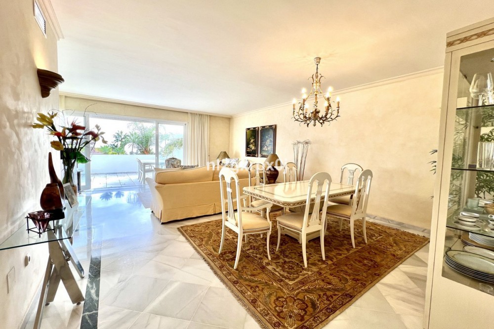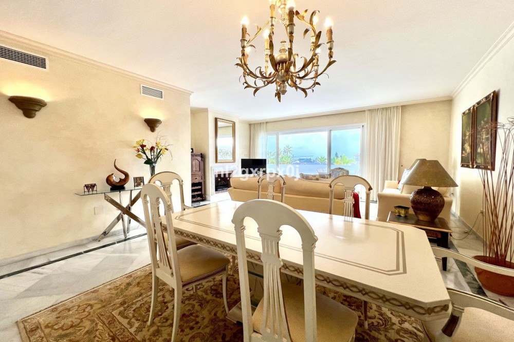 • Beautiful apt. on the first floor with south orientation and guaranteed open views of the sea, in one of the safest and quietest areas of Marbella in the prestigious Urb. de Bahia de Marbella, a five-minute walk to the beach. Spacious apt. of origin in very good condition with separate kitchen with laundry room. The spacious living room enjoys panoramic views of the sea from the dining room, the living room leads to the large terrace, with an outdoor dining room and relaxation area to enjoy the beautiful sunsets. This apt. It also has two large parking spaces and a large storage room. Bahia Real is a gated community with security and concierge, with several swimming pools and 2 tennis courts, a five-minute walk to the best beaches in Marbella and a 5-minute drive from La Cañada Shopping Center, or supermarkets such as Carrefour and Aldi.