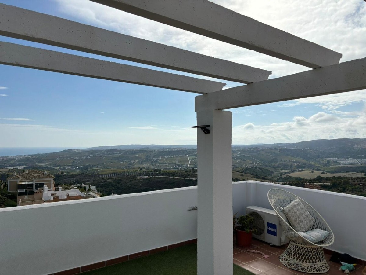 - Spectacular Penthouse in a Dream Home Surrounded by Nature and Golf Courses Discover this impressive penthouse in the exclusive , located in a privileged area surrounded by beautiful golf courses and stunning natural landscapes. This exceptional property is the ideal blend of modern comfort and serene elegance, overlooking the beach and panoramic views that are truly breathtaking. Property Features: Spacious and Bright Layout: The apartment offers two luminous bedrooms with fitted wardrobes, two bathrooms (one en-suite in the master bedroom), and an open-concept, fully equipped American-style kitchen. Living Area & Terrace: The kitchen opens up to a bright living room that leads directly to a large 30-square-meter terrace, offering spectacular views of both the mountains and the sea. This expansive outdoor space is perfect for entertaining, dining al fresco, or simply relaxing with a view. Private Solarium: From the terrace, a spiral staircase leads to an incredible 75-square-meter solarium with 360-degree views. This rooftop space is perfect for setting up a barbecue area, installing a jacuzzi, or creating a private oasis for sunbathing and unwinding. Amenities & Location: The property also includes a designated parking space in a secure garage. Located just 5 minutes from the beach, this penthouse combines natural beauty with convenience, offering easy access to the coast while nestled in a tranquil, picturesque setting. This penthouse is ideal for those seeking a peaceful lifestyle without sacrificing modern amenities or accessibility. Don’t miss the chance to own this exceptional property and experience life in one of Casares' most coveted locations! Schedule a visit today and see for yourself what makes this home so special!