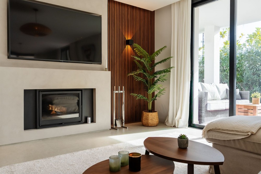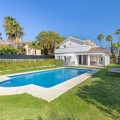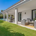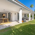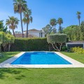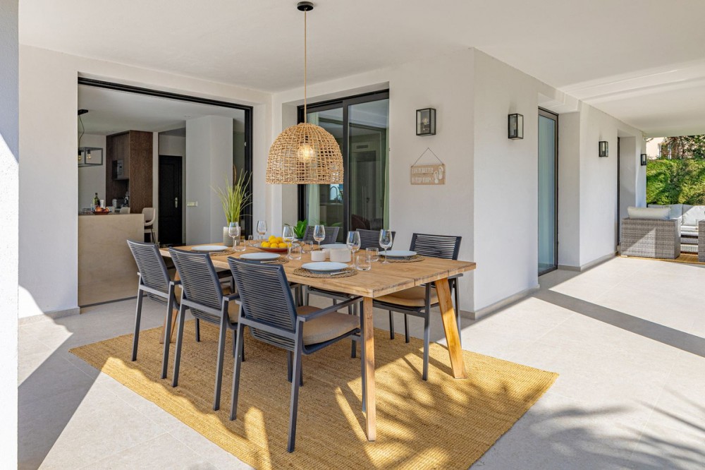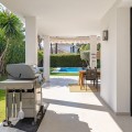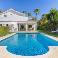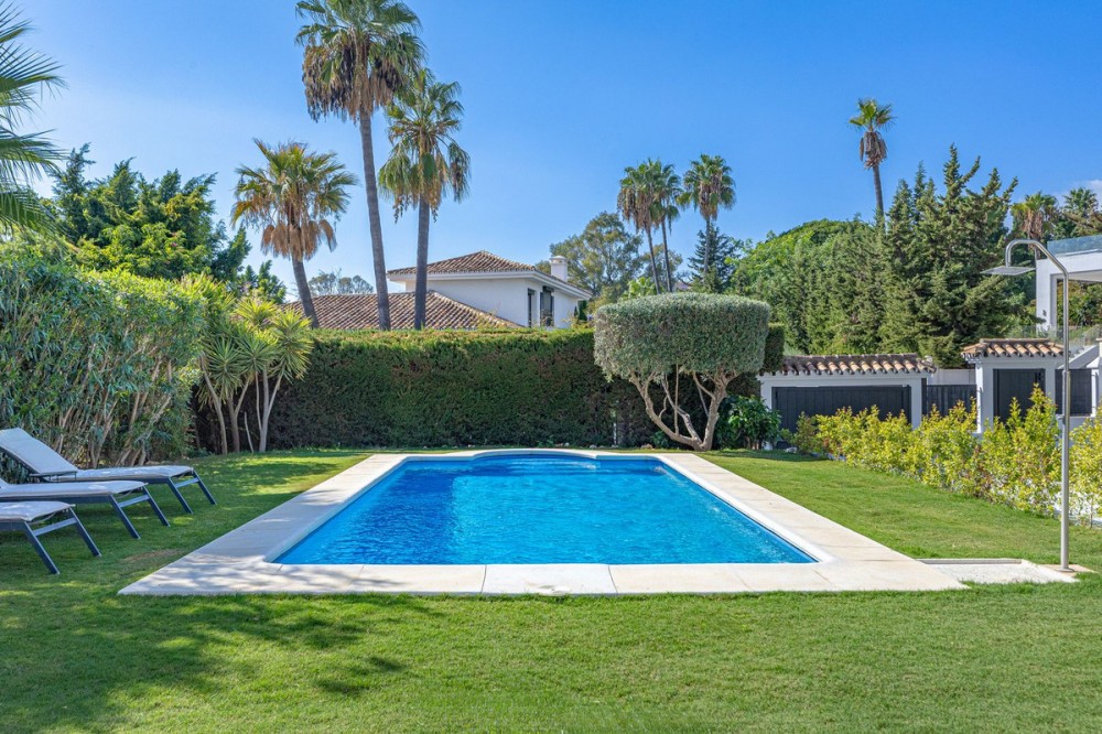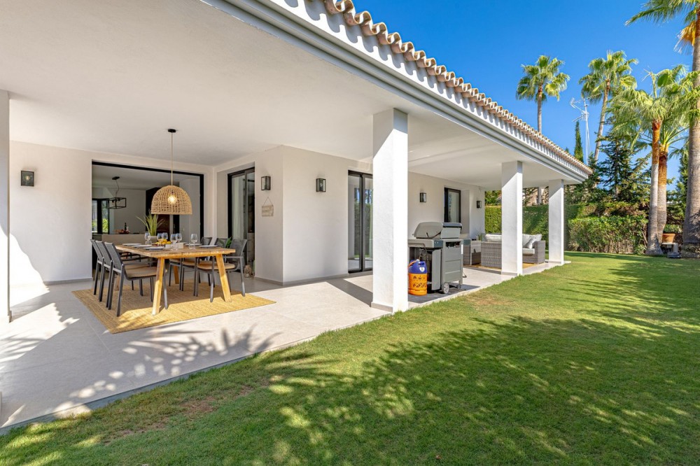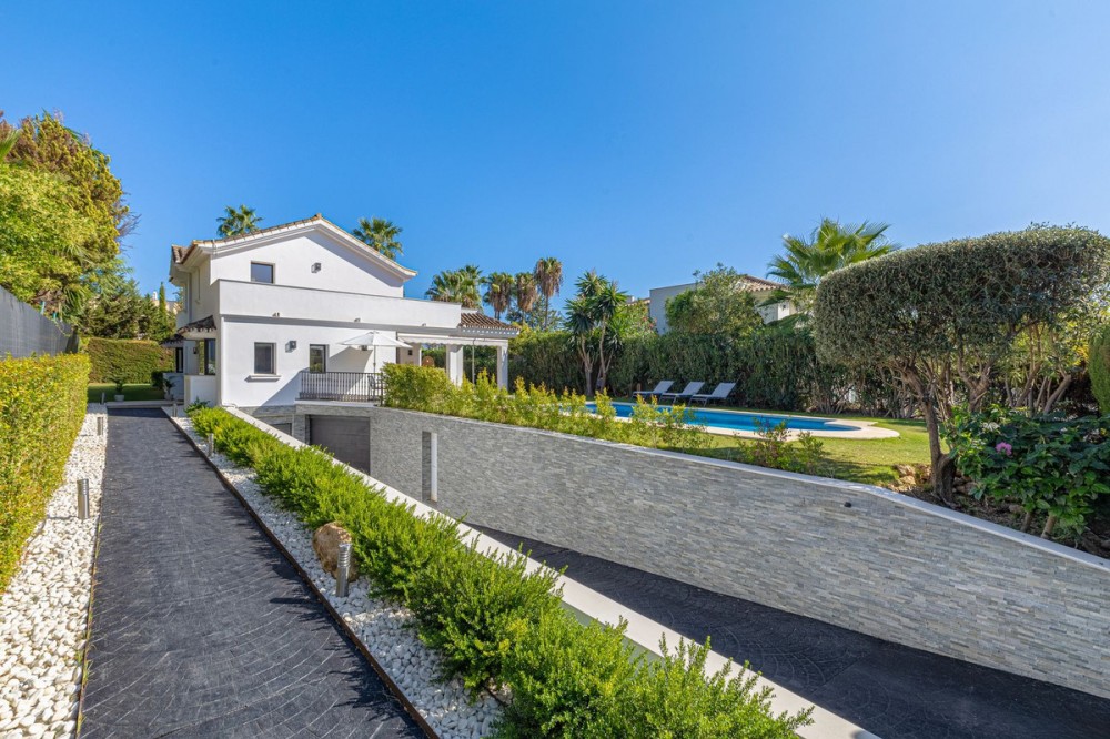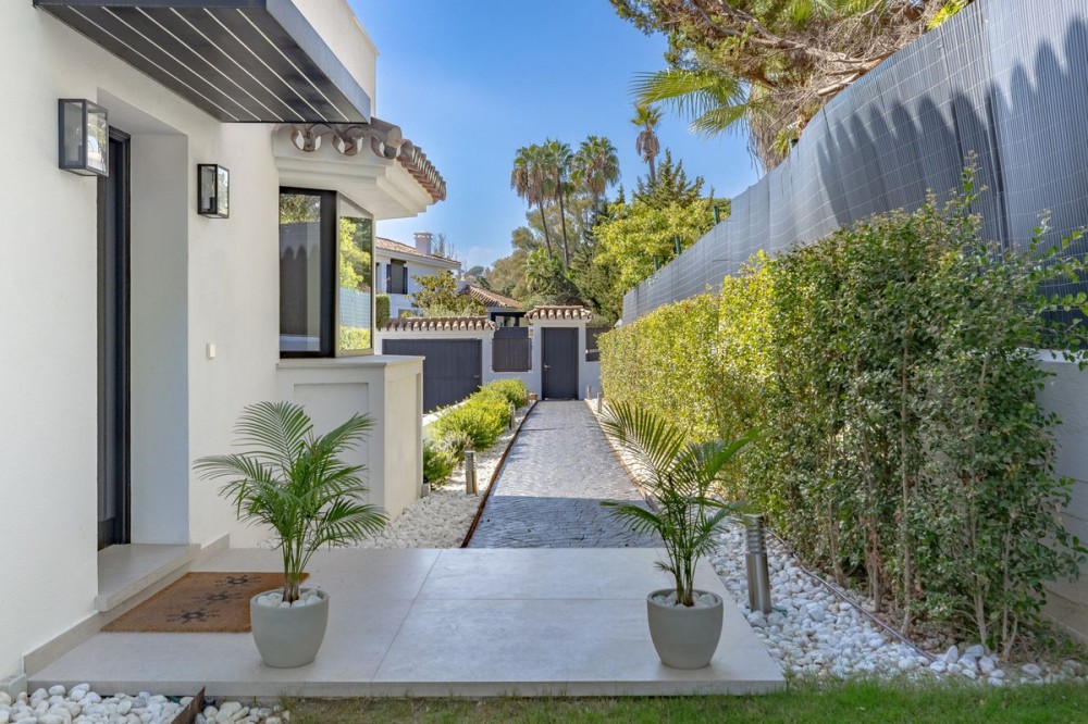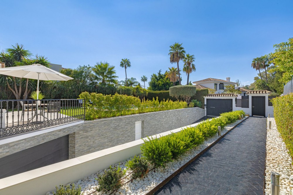 - This fantastic villa is located in the middle of the Golf Valley in Nueva Andalucia, a quiet and very attractive area with proximity to golf courses such as Las Brisas, Los Naranjos and Aloha Golf. Here you live with a 20 minute walk to the nearest restaurants and café. Only a few minutes by car to Puerto Banus and Marbella town, which offers a wide range of restaurants and shops. Proximity to the beach and the long, lovely promenade. In Nueva Andalucia you are close to a supermarket, school, pharmacy and bank. Welcome to a newly renovated villa of the highest quality, completed in 2024 in a modern Scandinavian style. Four bedrooms and four bathrooms, three of which are en-suite with underfloor heating. The ground floor has a kitchen from Ballingslöv and Siemens appliances, a living room in a bright open plan and direct access to the large terrace and garden. Large sliding glass doors that provide natural sunlight into the entire villa. Upper floor with two bedrooms en-suite and a balcony that is accessible from both rooms with a lovely view where you can sense La Concha and Los Naranjos golf course. Basement with bedroom en-suite, spacious gym and a separate laundry room. Here there are endless possibilities to decorate how you want and according to your own needs. From the basement you have access to a large garage, storage room and the entrance to the house. Solar cells that give the villa an energy-efficient living space, fireplace in the living room for a lovely cozy feeling and natural warmth. Airzone air conditioning system where you personally ensure temperature control throughout the villa. Spacious terrace, partly covered, private pool and outdoor shower. Large garden that provides plenty of space for outdoor activities and enjoying the wonderful climate of the Costa del Sol.