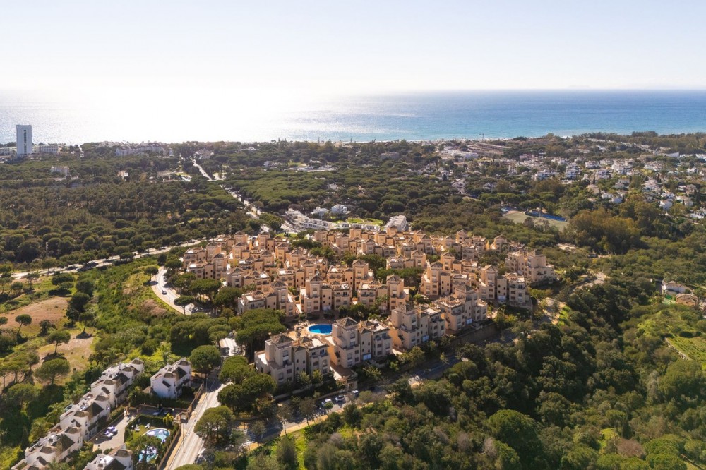 - This stunning duplex penthouse in Elviria presents a unique opportunity for both investment and personal enjoyment, boasting unparalleled sea views and a prime location just moments from all amenities and the beach in Elviria. With generous proportions and a sleek, modern design, the property features four spacious bedrooms, each with its own en-suite bathroom, plus an additional guest toilet conveniently located next to the living area. The bedrooms are thoughtfully arranged over two levels to ensure maximum comfort and privacy. Upon entering the penthouse from either the garage or the main entrance, the private elevator opens into a welcoming foyer that leads into a bright and airy living room with soaring ceilings, creating a sense of openness and elegance. This level also includes a formal dining area, and a contemporary, open-plan kitchen equipped with high-end appliances, including a professional ice maker. A large wraparound terrace encircles the entire apartment, offering over 200 m² of outdoor space and direct access to the community pools. Two of the bedrooms and bathrooms are located on this floor, providing ample comfort and functionality. Each room features beautiful, custom-built wardrobes with wood lining, designed for both style and practicality. The bathrooms are equipped with automatic solar-powered ventilation, ensuring comfort and sustainability. On the upper level, you'll find two additional bedrooms, two bathrooms, and a spacious private terrace — ideal for relaxation while enjoying panoramic sea views. Throughout the penthouse, beautiful wooden floors add warmth and sophistication to every room. Notably, all the bedrooms are furnished with premium “Jensen” brand beds, ensuring ultimate comfort and luxury. The penthouse is ideally situated with direct access to the community pools, which are easily visible from the terrace, making it a perfect family home, especially for those with young children. Additional features include two parking spaces and a storage room, adding convenience and practicality. Whether as a year-round residence or a luxurious holiday retreat, this penthouse perfectly blends comfort, style, and an enviable location in Elviria, Marbella.