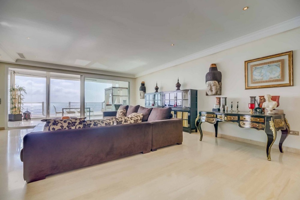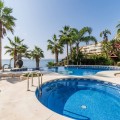 - Rare opportunity in Torrequebrada - These properties are very rarely for sale Luxury middle Floor , beachfront Apartment, Benalmadena Costa, Costa del Sol. 3 Bedrooms, 3 Bathrooms, Built 231m², Terrace 38 m². Setting : Beachfront, Beachside, Close To Golf, Close To Shops, Close To Sea, Close To Schools, Urbanisation, Front Line Beach Complex. Orientation : South. Condition : Excellent. Pool : Communal. Climate Control : Air Conditioning, Pre Installed A/C, Hot A/C, Cold A/C, Fireplace. Views : Sea, Beach, Panoramic, Garden, Pool. Features : Covered Terrace, Lift, Fitted Wardrobes, Near Transport, Private Terrace, WiFi, Storage Room, Utility Room, Ensuite Bathroom, Access for people with reduced mobility, Marble Flooring, Jacuzzi, Double Glazing, Domotics. Furniture : Fully Furnished. Kitchen : Fully Fitted. Unique investment opportunity - Discover Paradise on the Coastline! Step into a dream come true with this once-in-a-lifetime opportunity to own one of the most exclusive properties in Benalmádena Costa, nestled on the pristine first line of the beach. This exceptional residence offers 192m² of sophisticated living space, complemented by a 38m² terrace with breathtaking, uninterrupted views of the shimmering Mediterranean Sea and the enchanting Fuengirola Bay. Inside, you'll find three generously sized bedrooms and two beautifully designed bathrooms, with space for a private sauna to create your personal oasis. A guest toilet, a spacious living room, and an elegant kitchen - separated by a modern, see-through gas fireplace - providing a seamless blend of luxury and comfort. The chef’s kitchen, fully equipped with premium appliances, promises culinary inspiration at every turn. Enjoy the terrace year-round with sleek glass curtains framing the view. The largest terrace is your personal sanctuary, offering what may be the most stunning panoramic views on the coast while enjoying the indoor or outdoor jacuzzi in total privacy. This remarkable home is crafted with the finest materials and impeccable design, while the building itself offers premium amenities, including a community garden, sparkling pools, and private stairs leading directly to the beach. On the lower level you have 2 parkings, each of approx 30m² and a storage room of 7,7m². Even the building stands out as the elegant old style house with azure blue colors. This area is the upcoming part of Torrequebrada with new, high-end homes, gourmet restaurants (Yucas, Trocadero, Malibu beach club and more) and very close to supermarkets, shops, vets, pharmacy and more. Your dream lifestyle awaits - don’t miss the chance to call this masterpiece your own!