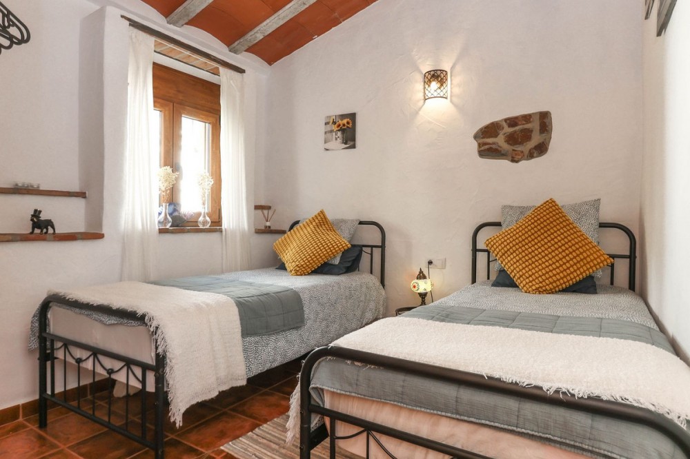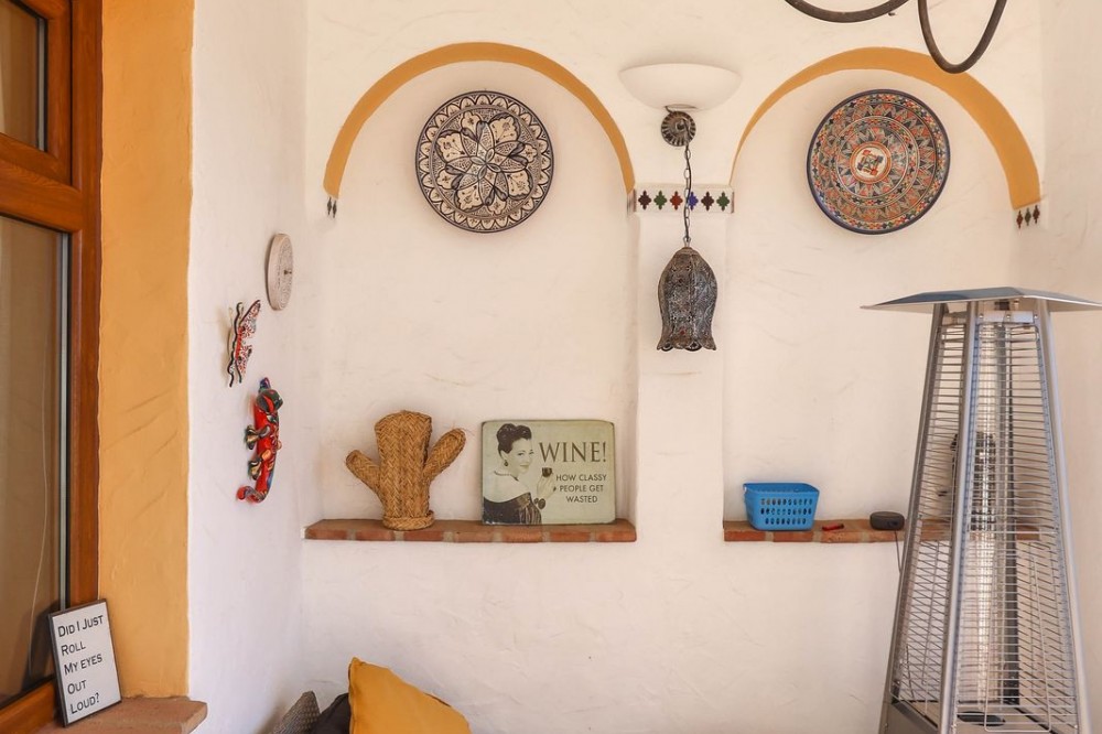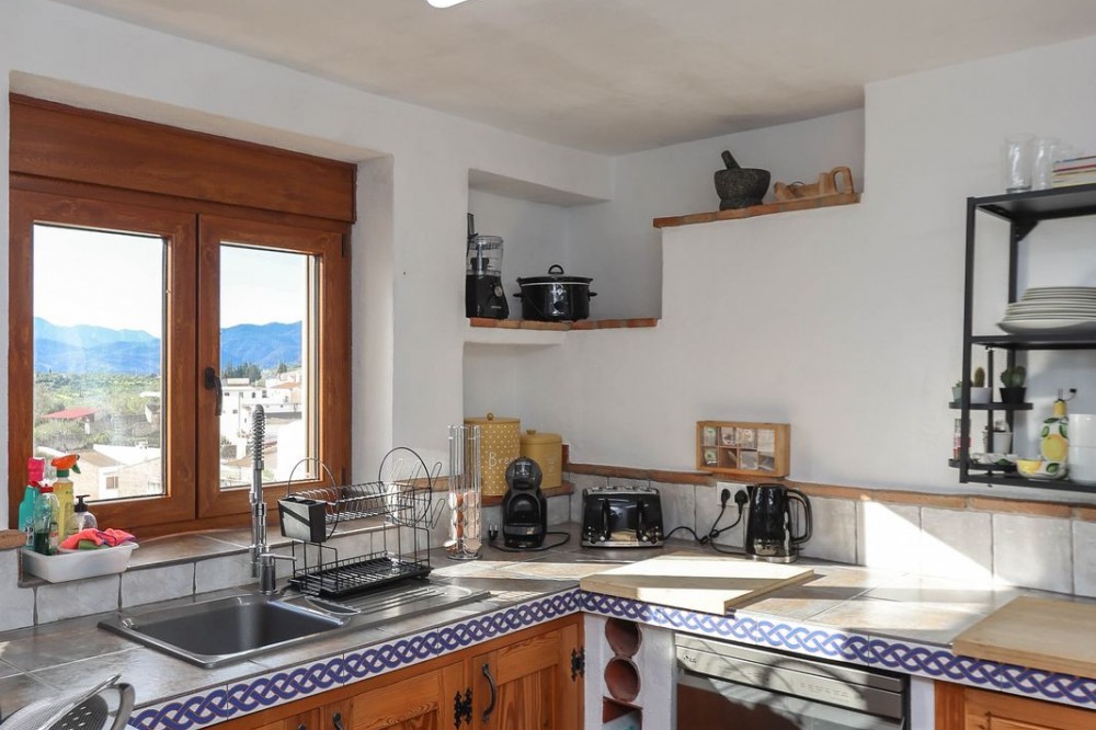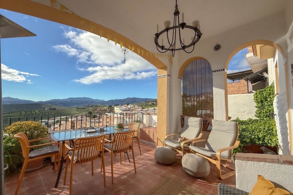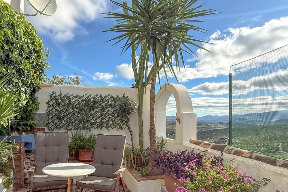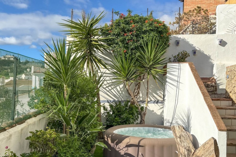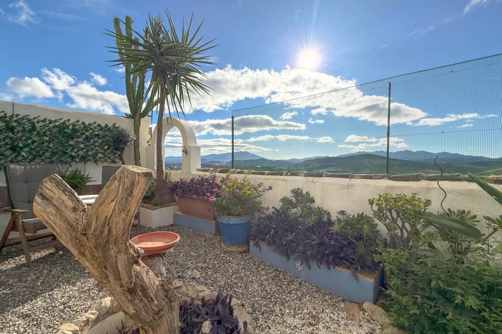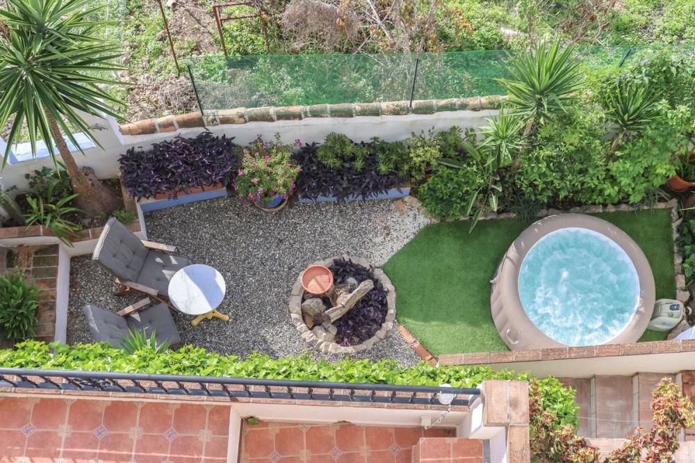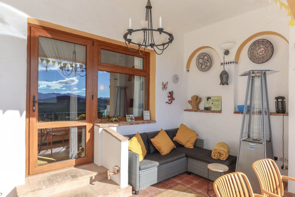 - Excellent Quality Build . Centre of artesanal village . Private Garden . Shaded Terrace . Big Open Views . Beautifully presented This immaculate townhouse has been designed to enjoy modern day living with the charm of a rustic town house. Property Details: The Ornamental brick work that decorates the facade of this property has been thoughtful designed and is a great first impression when arriving at the property. You see immediately the attention to detail. Once entering into the property you immediately know that this town house is very special indeed. A hallway welcomes you to the property to the right is the separate dining room with windows to the front aspect to the left is one of the bathrooms. With line of sight to the elevated terrace and those views, the terrace is beckoning you to take a look! The lounge sits to the rear of the property, the perfect spot! a large picture window frames the mountain views with a patio door leading you directly to the shaded covered terrace. It is quite rare to find a town house with a terrace leading from the lounge AND a view. Stairs lead down to the secluded garden with BBQ area and then again the 'sun spot' that is the lower garden. The traditional andalacian style kitchen is accessed from the hallway. The bedrooms are all located on the first floor. The master bedroom has the added luxury of private terrace again with those fabulous views. Both bedoom 2 and 3 are double bedrooms and are light airy. Bedroom 2 has french windows with juliette balcony. The second bathroom is also located on the first floor. Outdoor area and Land: Terrace and Private Garden Views: Far Reaching Access: Good. Parking close by.