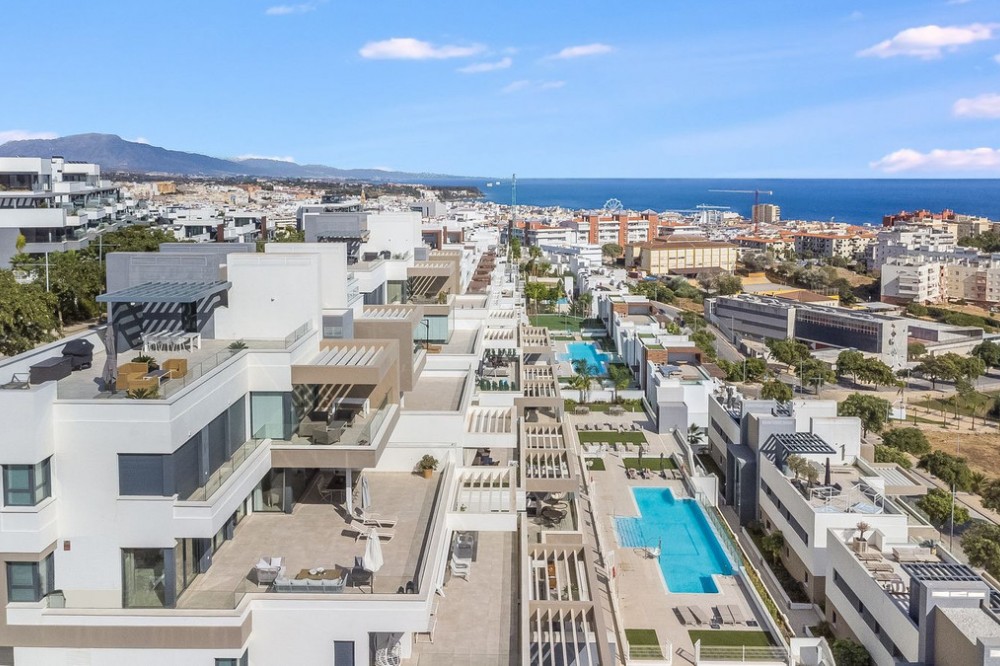 - <B>Exclusive Top-Floor Apartment in Estepona 110 sqm terrace with Stunning Views to Gibraltar and Africa REDUCED PRICE FOR A FAST SALE! Unique 4 bed room apartment with panoramic views to Gibraltar and Africa from living room and 3 of the bedrooms. Discover your dream home in the prestigious South bay development, located in the vibrant and picturesque town of Estepona. This top-floor apartment offers the perfect blend of modern design, comfort, and convenience, making it ideal for families, professionals, or anyone seeking an exceptional lifestyle on the Costa del Sol. AEDAS in Estepona, located in the new Las Mesas neighborhood, was completed around 2021. This modern development offers a premium lifestyle with a focus on sustainability, comfort, and high-quality amenities. Residents enjoy a large communal pool with sea views, a fully equipped gym, a social club, and landscaped gardens. The project also incorporates smart home technology, underfloor heating, and energy-efficient designs, including pre-installation for electric car chargers <B>Property Highlights:</B> <B>Interior Space:</B> 120 sqm of elegant living area with a bright and open layout. <B>Bedrooms & Bathrooms:</B> 4 spacious bedrooms and 3 modern bathrooms, designed with high-quality finishes. <B>Terrace:</B> A magnificent 110 sqm terrace, including a 38 sqm covered section perfect for year-round outdoor dining or relaxing in the shade. The remaining 72 sqm is open, ideal for sunbathing or enjoying panoramic views of the mountains and Mediterranean Sea. <B>Community Features:</B> <B>Swimming Pool:</B> A large outdoor pool surrounded by lush gardens – the perfect place to cool off on sunny days. <B>Gym:</B> A fully equipped fitness center to help you stay active without leaving home. <B>Parking & Storage:</B> Private parking and a secure storage room included. <B>Security:</B> Gated community with 24-hour surveillance for peace of mind. <B>Unbeatable Location:</B> Alexia is perfectly situated in Estepona, one of the most sought-after towns on the Costa del Sol. Here, you’ll enjoy the best of both worlds – a peaceful, residential setting with easy access to all amenities and attractions. <B>Estepona Marina:</B> Walking distance, 1 km, for fantastic restaurants, bars, and water activities.</B> <B>Historic Old Town:</B> Only 3 km to Estepona's charming center with cobblestone streets, boutique shops, and vibrant squares. <B>Beaches:</B> A short 10-minute walk (800 meters) to the sandy beaches and chiringuitos. <B>Supermarkets & Services:</B> Within 5 minutes' reach of top-rated supermarkets, pharmacies, and schools. <B>Malaga Airport:</B> Approximately 50 minutes by car (80 km), making travel easy and accessible. Whether you’re seeking a permanent home, vacation property, or a high-return investment, this top-floor apartment in South Bay has it all. With its prime location, spacious design, and excellent facilities, this is luxury living at its finest in Estepona. <B>Contact Us Today!</B> We have keys in office for easy viewings! Don’t miss the chance to own this exceptional property. Schedule a viewing and let us show you why this apartment is is one of Estepona’s most desirable places to live.