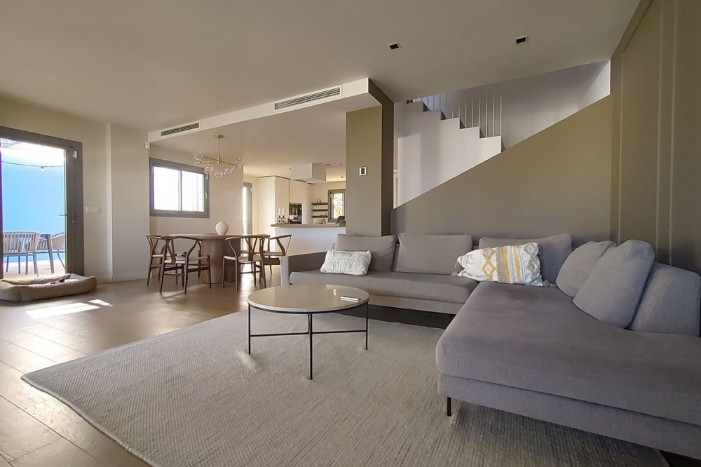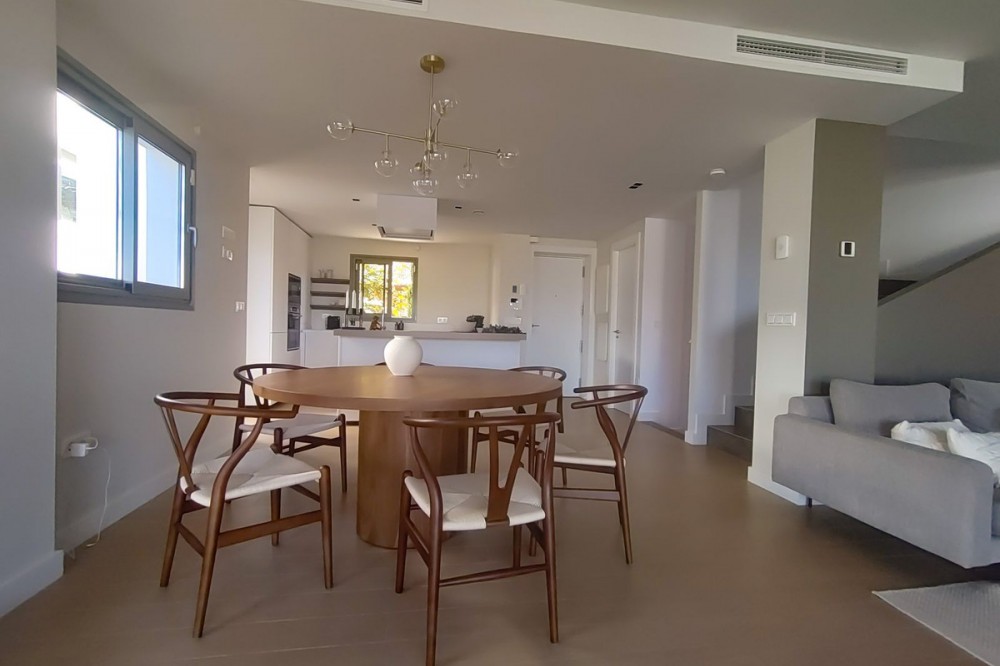 - Exclusive Townhouse Villa in the Heart of the Costa del Sol: Luxury, Comfort, and Perfect Connectivity Discover a true architectural gem, crafted with meticulous attention to detail and premium finishes, located in one of the most exclusive and secure communities on the Costa del Sol. Prime Location: This stunning villa combines tranquility with accessibility. It is just 3 minutes from local shops and restaurants, 5 minutes from the charming village of Mijas Pueblo, and 10 minutes from beautiful beaches. Additionally, it offers easy access to Málaga city, the airport, and the highway, making it a strategic base to enjoy everything the region has to offer. Spacious and Sophisticated Design: Spread across three luxurious levels, this villa redefines the concept of home: • Ground Floor: A bright and spacious living room seamlessly connects to a modern, fully equipped open-plan kitchen. This space flows onto an elegant covered terrace, perfect for outdoor gatherings. You’ll also find a guest toilet, a laundry room, and access to a cozy side terrace ideal for al fresco dining under the stars. • Upper Level: Three generously sized double bedrooms with built-in wardrobes, including a spectacular master suite with a private bathroom and access to a terrace boasting panoramic views of the sea and mountains. • Lower Level: A multifunctional area featuring a home office, a double bedroom with an en-suite bathroom, and a large double garage with electric doors and a storage/workshop area. Premium Features: Surrounded by beautifully landscaped gardens, this villa provides access to a charming community pool. Additional upgrades include hot and cold air conditioning, double glazing, high-speed fiber optic internet, elegant marble flooring, and top-of-the-line kitchen appliances. A Unique Investment Opportunity: Whether as a family residence, vacation retreat, or high-potential rental property, this villa offers unmatched value and style. Schedule your private tour today and experience the charm of this exceptional home firsthand. Don’t miss this opportunity!