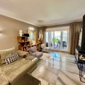 - Spacious ground floor apartment beachfront promenade San Pedro de Alcantara. Costa del Sol Spacious ground floor apartment with garden west facing very bright located on the beachfront next to the promenade of San Pedro de Alcantara. Area with many restaurants, tennis and paddle sports club, boulevard and only 4 minutes from Puerto Banús. Closed urbanization with 24 hour security, two large lake-type pools surrounded by large and well-kept community gardens. The apartment has a living-dining room with direct access to the porch, to the gardens and swimming pools of the urbanization, fully equipped kitchen with terrace and laundry room, master bedroom en-suite with dressing area and bathroom with shower , another three very spacious and bright double rooms, two guest bathrooms. The apartment has never been recently reformed to high standarts. It has a large underground parking space and storage room available for private use.