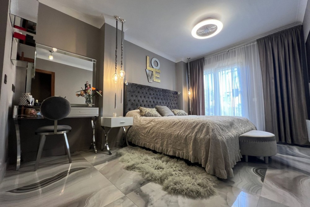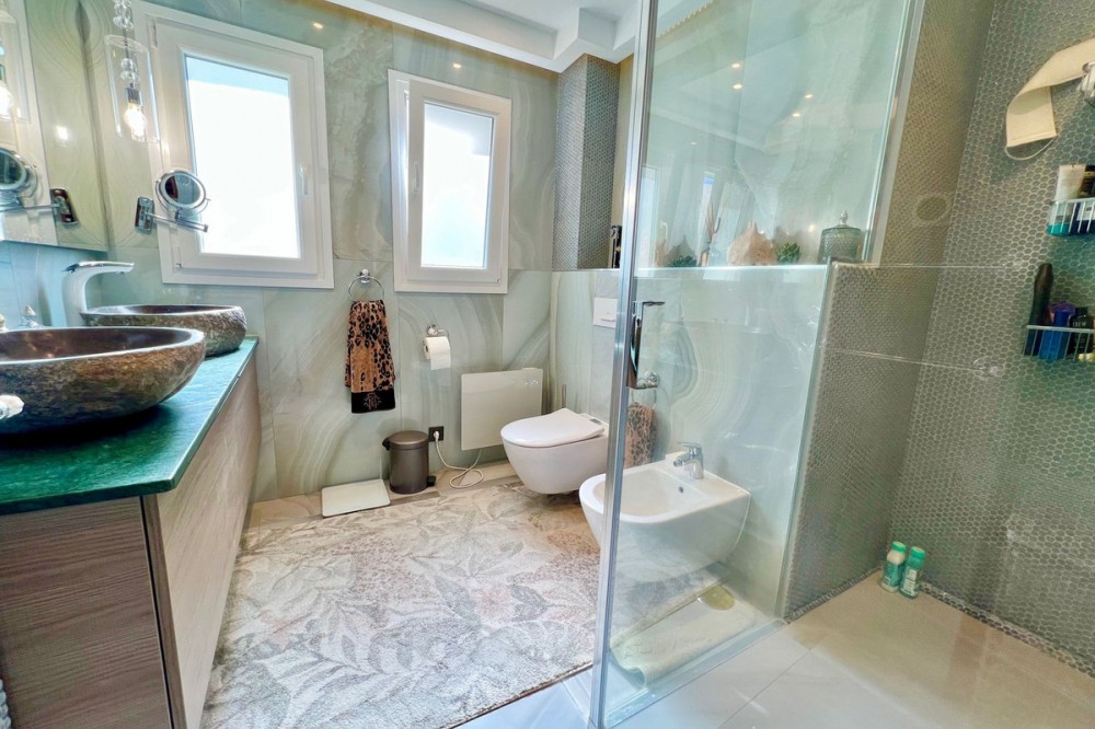 - Spacious ground floor apartment beachfront promenade San Pedro de Alcantara. Costa del Sol Spacious ground floor apartment with garden west facing very bright located on the beachfront next to the promenade of San Pedro de Alcantara. Area with many restaurants, tennis and paddle sports club, boulevard and only 4 minutes from Puerto Banús. Closed urbanization with 24 hour security, two large lake-type pools surrounded by large and well-kept community gardens. The apartment has a living-dining room with direct access to the porch, to the gardens and swimming pools of the urbanization, fully equipped kitchen with terrace and laundry room, master bedroom en-suite with dressing area and bathroom with shower , another three very spacious and bright double rooms, two guest bathrooms. The apartment has never been recently reformed to high standarts. It has a large underground parking space and storage room available for private use.