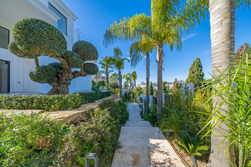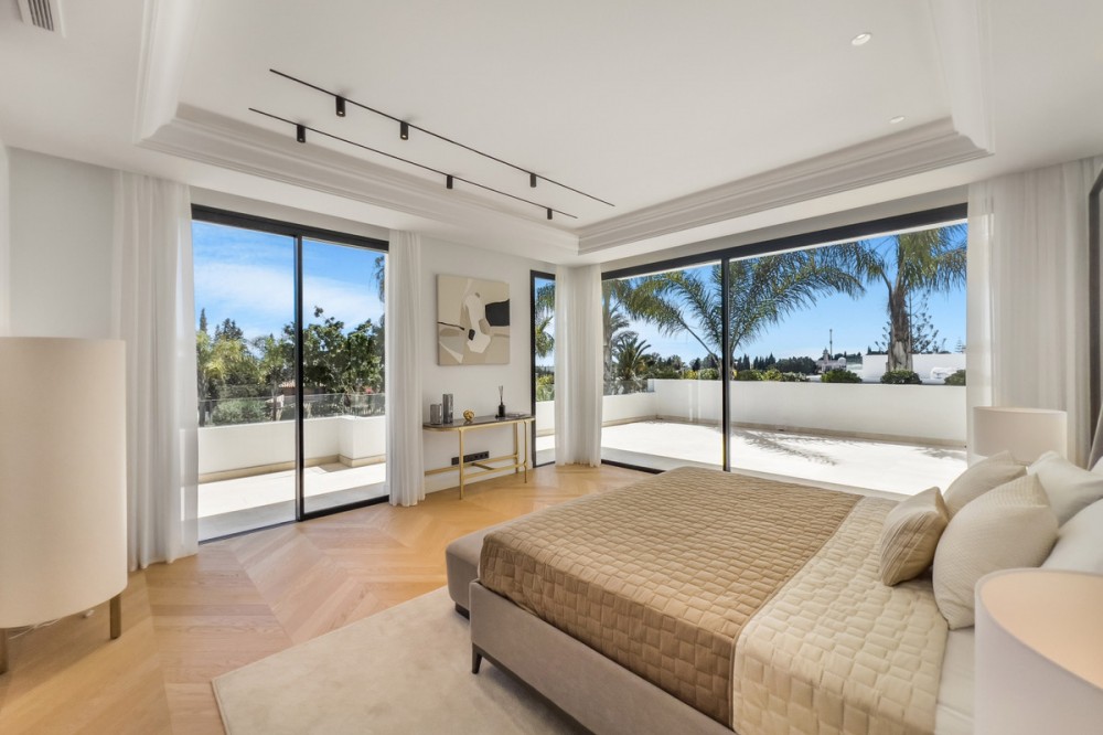 - New Development: Prices from €6,400,000 to €6,500,000. [Bedrooms: 6] [Bathrooms: 6] [Built size: 647m2]. Located in Lomas de Marbella Club, a prestigious urbanization on the Golden Mile. It is a very quiet enclave with immediate access from the AP-7 motorway to all points of interest in the city and on the Costa del Sol. Privileged location that places them 10 minutes from the center of Marbella, 40 km from Malaga International Airport, 50 km from the AVE station and 85 km from Gibraltar Airport. The fenced urbanization Las Lomas del Marbella Club is considered elite and is one of the best addresses in southern Spain. It is one of the most popular luxury residential areas in Marbella, maintaining its elegant and original appearance, with spacious and perfect green areas, 24 hour security, quality of life and architecture. Its location north of the Golden Mile, in front of the Puente Romano and close to the Royal Mosque with its impressive Andalusian Arabic architecture, makes it a privileged area. This urbanization welcomes all kinds of local and international celebrities, Spanish nobles and European elites, being a very exclusive urbanization with the most expensive villas and mansions in the area. On the other hand, the urbanization is close to a mythical 5* hotel, Michelin star restaurants, numerous golf courses and international schools, Marbella and Puerto Banús. Wide variety of fashion boutiques, restaurants and nightlife. Four villas are designed with the highest standards of quality and luxury, incorporating energy systems and characteristics of the most avant-garde architecture. Beauty, elegance, and comfort characterize these south-facing villas, both classic and modern in appearance, with superior qualities and exceptional materials. Each villa is well proportioned in terms of layout, spread over 3 levels and a rooftop terrace to create an exquisitely tasteful 6-bedroom residence with multiple entertaining areas. Entering the villa, the main floor has a large space divided into several areas. The fully equipped kitchen with state-of-the-art appliances has a custom-made island. The upper floor consists of 3 bedrooms with bathrooms and dressing rooms en-suite. The master bedroom with access to the large terrace has a spectacular view of the pool and the sea. The attractive basement has parking space for 3 cars, a laundry area, a dirty kitchen, and direct elevator access to the kitchen on the main floor. In addition, on this floor, there are 3 more bedrooms perfect for guests.