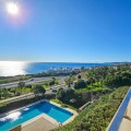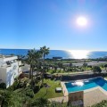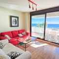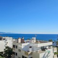 - Stunning sea views in this 2 bedroom, 2 bathroom beachfront apartment in this development with communal gardens, paddle tennis court and swimming pool. This spectacular apartment has its entrance on the ground floor, although it is an intermediate floor due to the elevation of the land facing the sea. It is distributed as follows: spacious and bright living-dining room through the large window with beautiful sea views and direct access to the incredible 55m2 terrace with covered and uncovered areas, perfect for dining outdoors all year round. The kitchen is independent, L-shaped, has a granite kitchen counter and modern, high-quality furniture, and has a space for laundry and other utilities. The master bedroom is large and has an en-suite bathroom with a bathtub, a large built-in wardrobe and direct access to the terrace. In addition, it has another large room with access to the terrace and a second guest bathroom, also with a bathtub. The property has been built to the highest quality standards with laminate flooring, hot/cold air conditioning system, fitted wardrobes and electric shutters. In addition, it is sold fully furnished and includes a 5m2 storage room included in the price. The building also has a lift and video security. The location of the property is ideal, with sea views, a few minutes walk from the nearest beach (about 700 meters), 10 minutes by car from Estepona and La Duquesa beach.