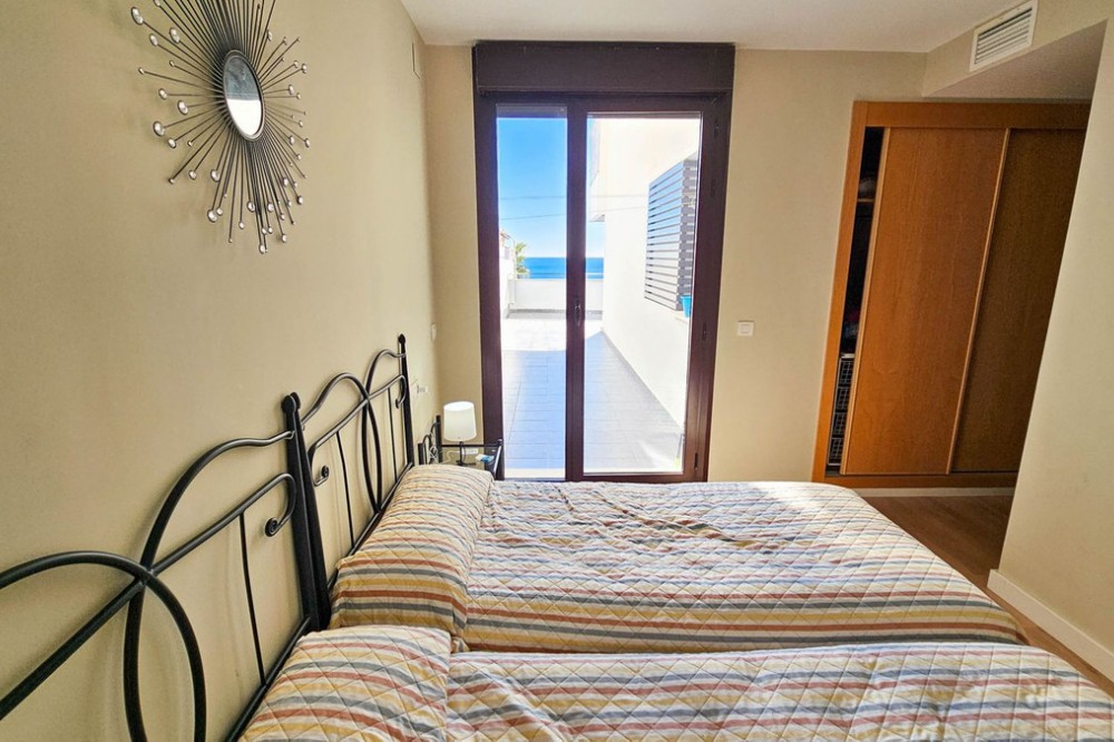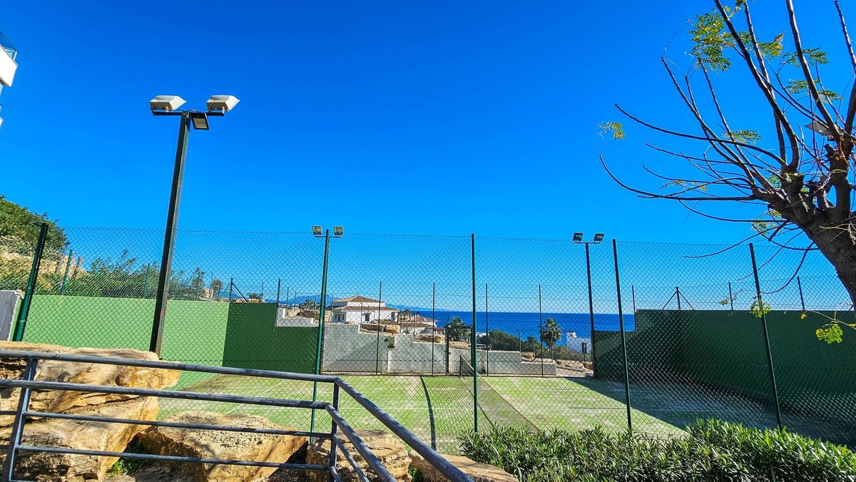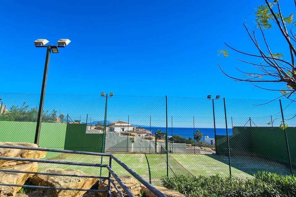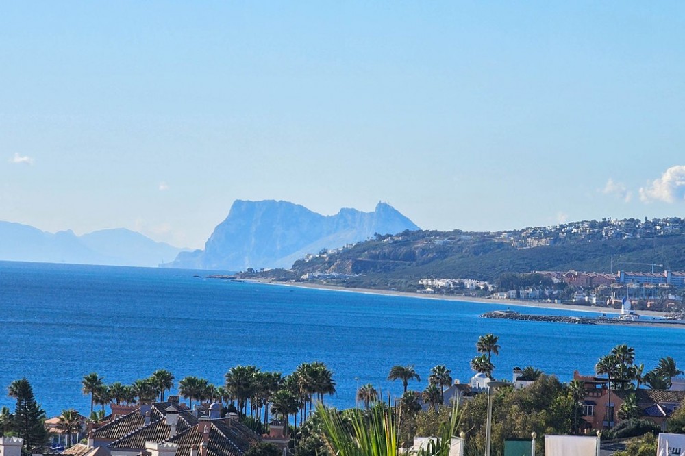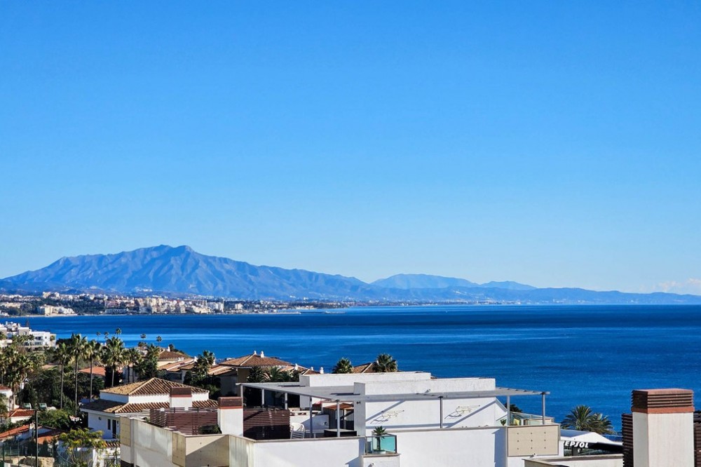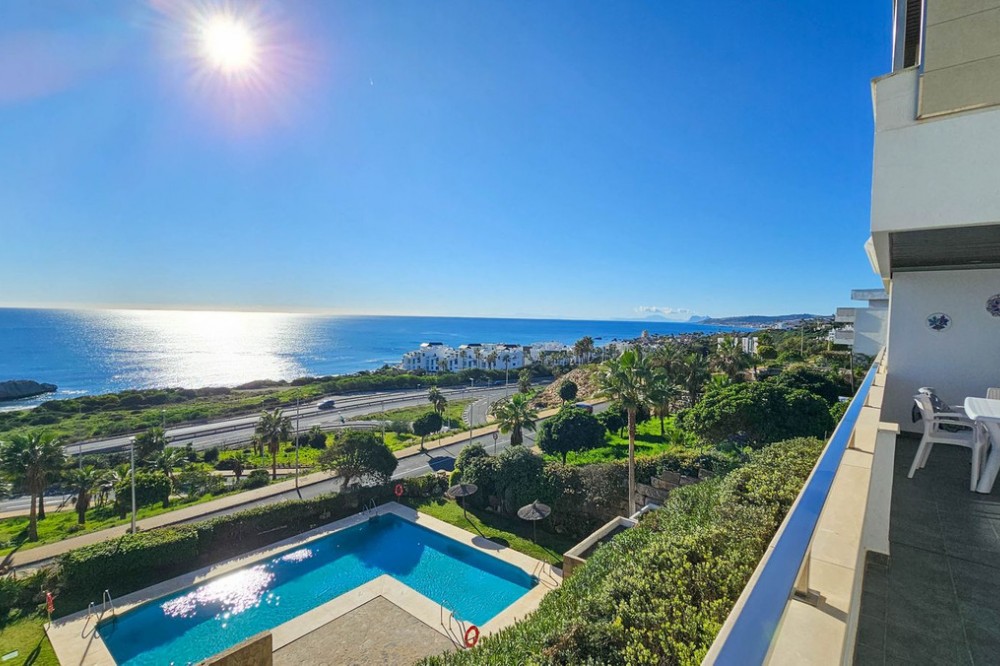 - Stunning sea views in this 2 bedroom, 2 bathroom beachfront apartment in this development with communal gardens, paddle tennis court and swimming pool. This spectacular apartment has its entrance on the ground floor, although it is an intermediate floor due to the elevation of the land facing the sea. It is distributed as follows: spacious and bright living-dining room through the large window with beautiful sea views and direct access to the incredible 55m2 terrace with covered and uncovered areas, perfect for dining outdoors all year round. The kitchen is independent, L-shaped, has a granite kitchen counter and modern, high-quality furniture, and has a space for laundry and other utilities. The master bedroom is large and has an en-suite bathroom with a bathtub, a large built-in wardrobe and direct access to the terrace. In addition, it has another large room with access to the terrace and a second guest bathroom, also with a bathtub. The property has been built to the highest quality standards with laminate flooring, hot/cold air conditioning system, fitted wardrobes and electric shutters. In addition, it is sold fully furnished and includes a 5m2 storage room included in the price. The building also has a lift and video security. The location of the property is ideal, with sea views, a few minutes walk from the nearest beach (about 700 meters), 10 minutes by car from Estepona and La Duquesa beach.