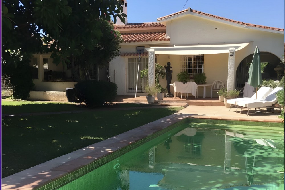 • Perfectly located just a few meters from the beach in Linda Vista beach side and the famous restaurant "El Ancla", we find this villa built on one floor enjoying the sun all day thanks to its South orientation. It has a very careful garden which gives you total privacy, with a nice pool in addition to an outdoor parking space. Located on a quiet little street, this property has infinite possibilities for anyone who wants to renew it. Living room with fireplace, fully equipped kitchen, laundry and 3 bedrooms with two bathrooms. Covered porch.