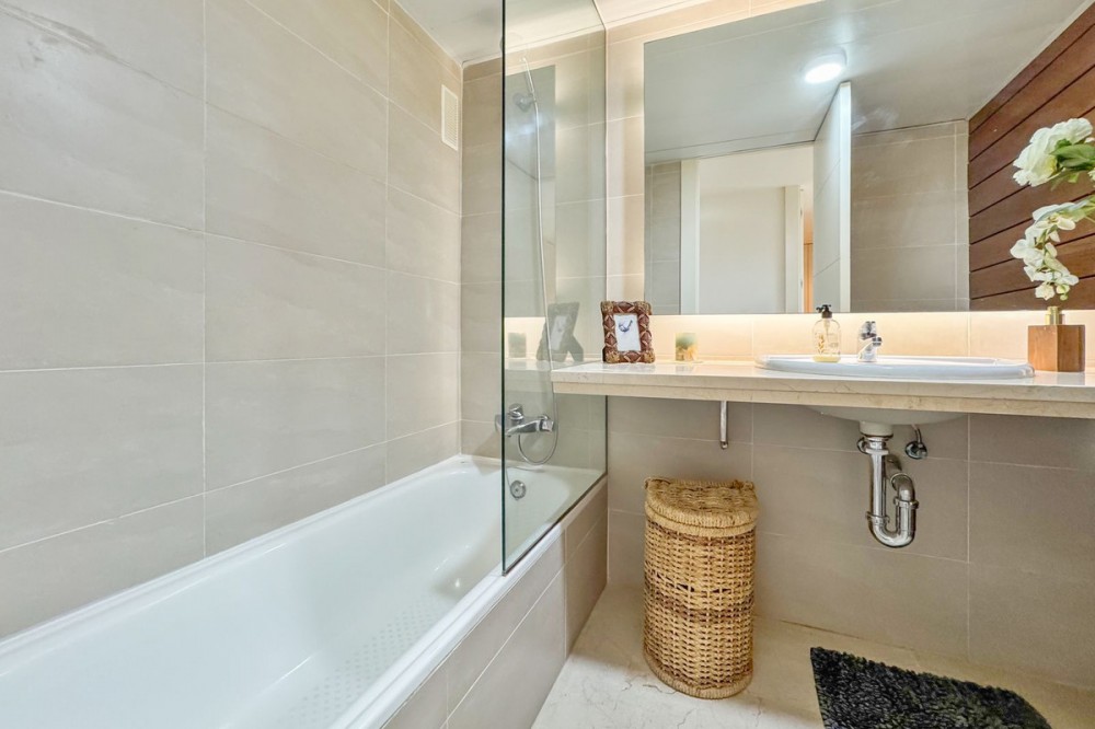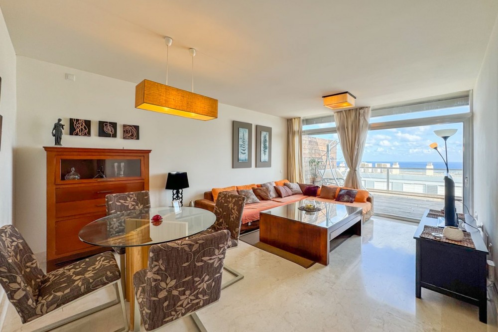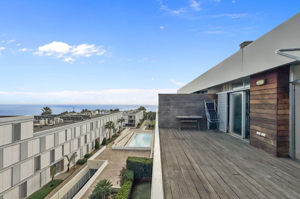 - Penthouse with Spectacular Sea Views in La Paloma 2 Bedrooms | Resort-Style Complex | High-End Finishes Community permits short term holiday rentals. Discover this stunning penthouse with breathtaking panoramic views of the Mediterranean coastline, ideally situated in La Paloma, between Sotogrande and Manilva. This prime location offers convenient access to the beach (just a 5-minute drive or a scenic 25-minute walk) and nearby amenities, making it perfect for a luxurious coastal lifestyle. Property Highlights Living Spaces: Step into a bright and welcoming hall that flows seamlessly into the spacious living and dining area, where large windows frame stunning sea views. The fully fitted kitchen, equipped with top-quality appliances, includes a utility room for added convenience. For those who prefer open-plan living, the kitchen can be easily integrated with the living area, creating a modern and functional space. Private Terrace: The expansive private terrace, finished with elegant Teka wood flooring and walls, is perfect for sunbathing, hosting al fresco dinners, or simply soaking in the mesmerizing sea views. Bedrooms: • Master Suite: Generously sized, featuring a walk-in wardrobe and a luxurious en-suite bathroom with Teka finishes. Enjoy tranquil views of the lush gardens and park from this serene retreat. • Guest Bedroom: A bright and spacious double bedroom with floor-to-ceiling windows and lovely garden views. Bathrooms: In addition to the en-suite, a stylish guest bathroom serves the second bedroom and visitors, ensuring comfort and convenience for all. High-Quality Specifications: This penthouse boasts premium features, including: • Elegant Teka wood finishes • Double-glazed aluminum windows • Polished marble floors • Smooth walls • Fitted wardrobes • Reinforced entry door • Underground parking space and storage unit Resort-Style Urbanization Experience unparalleled leisure and security in this gated community: • Infinity outdoor pool with panoramic views • Heated indoor pool for year-round enjoyment • Gourmet area with a communal kitchen and dining space overlooking the pool • Green lawns and landscaped gardens • Outdoor fitness area and park • Elevator access to all levels • 24/7 surveillance and security cameras All of this comes with surprisingly low community fees (less than €200/month), offering excellent value for money. Why Choose This Property? This penthouse is a rare gem, combining elegant living spaces, premium amenities, and a location in one of the most sought-after areas on the Costa del Sol. With property values in this area on the rise, it’s also an excellent investment opportunity. Don’t miss the chance to own this slice of paradise. Contact us today for more information or to arrange a private viewing.