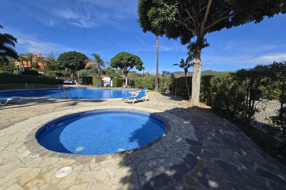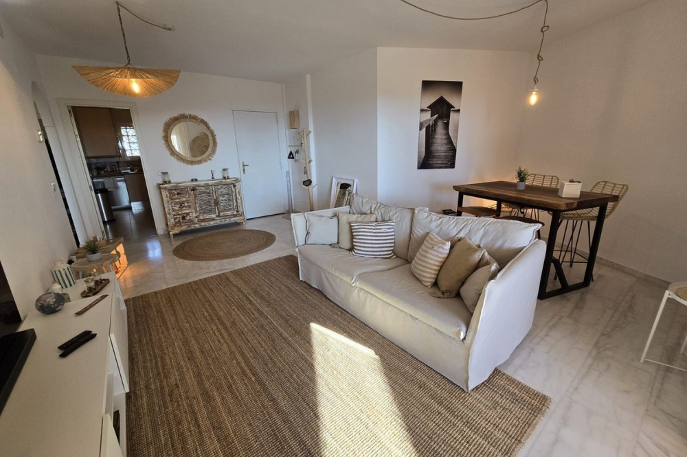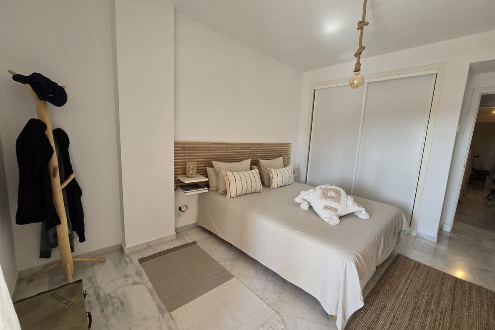 - Charming flat for sale in Reserva de Marbella with sea views, only 15 minutes drive from the centre of Marbella. The flat consists of 2 bedrooms with 2 complete bathrooms, one of them en suite, living-dining room (quite spacious as it is a corner flat), fully fitted kitchen, fitted wardrobes, air conditioning, lift. It is situated in the middle floor with fantastic views to the sea, it has a garage space and storage room. The urbanisation offers communal swimming pool, tropical gardens, security 24h