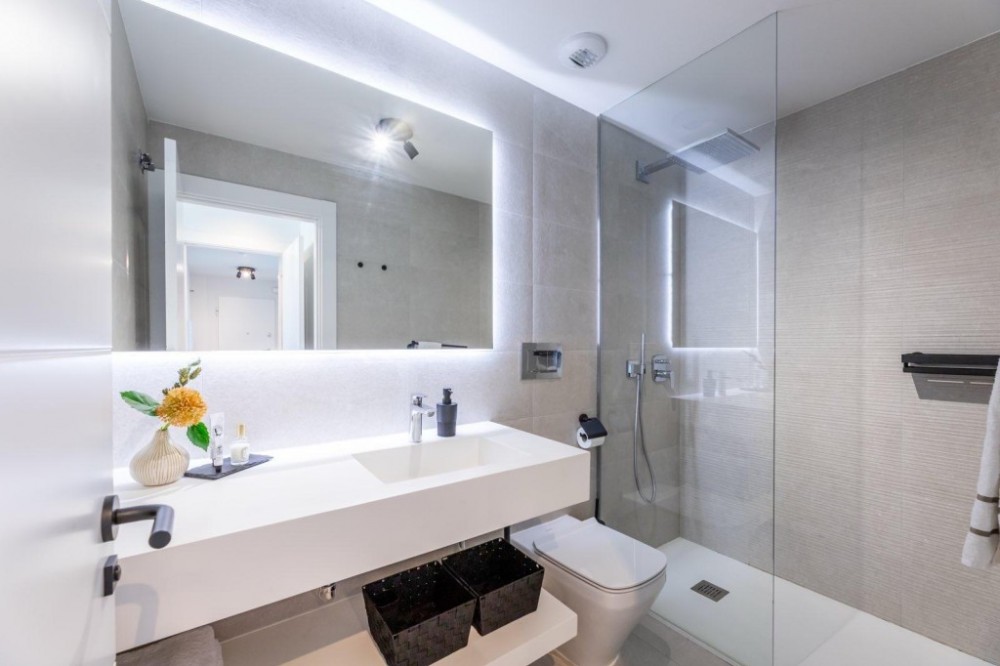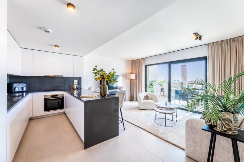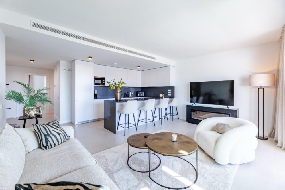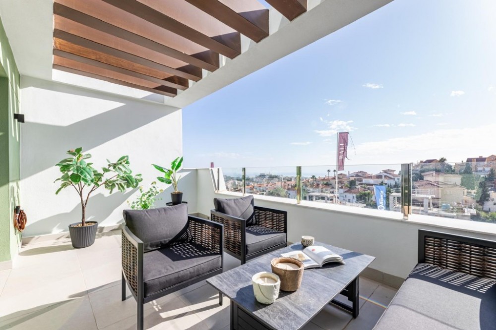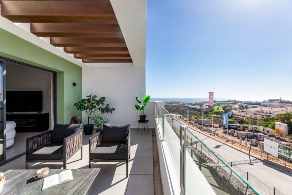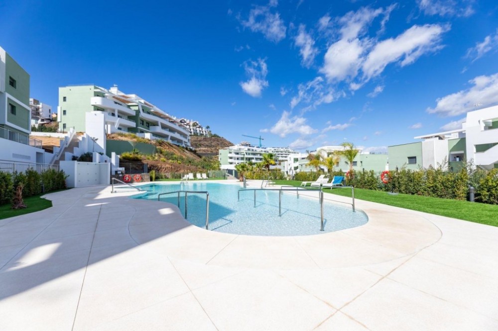 - BRAND NEW MIDDLE FLOOR WITH GOOD SEAVIEWS FOR SALE OR FOR RENT IN LA CALA DE MIJAS!!! This is a spacious 2 bedroom, 2 bathroom apartment has fantastic space inside and out with a large terrace of almost 20 sqm and a total construsted area of over 100sqm.. With a large open plan living, dining area and kitchen with large glass doors giving lots of natural light leading out to the terrace. Leaving the living area via the hallway you will find 2 bedrooms & 2 bathrooms. All bedrooms have good natrual light and fitted wardrobes. The new property project of Ipanema la Cala is desinged in a beuatiful modern tropical sytle with , Bahia la Cala has a wealth of great amenities including a beutiful modern co working area, swimming pool, gymnasium and of course beautiful grounds and gardens. The complex is private and gated for security and located just minutes from la Cala town center and the areas beaches.