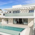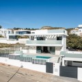 - SPACIOUS CONTEMPORARY VILLA IN TOP LOCATION! This beautiful villa is located only a short walk from the center of La Cala de Mijas, a unique villa just newly built. With its 6 spacious bedrooms with fitted wardrobes and five luxurious bathrooms it is definitely an amazing property which you do not often find that close to the center of La Cala. Upon entering on the ground floor, you will find a beautiful spacious living room with a glass facade so that you have a lot of natural light. A beautiful open kitchen with spacious dining table makes this an area where you literally feel at home. The kitchen is equipped with all necessary built-in Bosch appliances. Next to the kitchen there is a storage room where the washing machine and dryer are, both Bosch as well. From the living room you can walk outside and you immediately have access to the swimming pool with an outdoor shower. Next to the swimming pool there is another 30m2 terrace. There are several electricity and water points on this terrace. From both the living room and the swimming pool you have an amazing view, on one side you will see the mountains and on the other side the ocean. On the same level you find a bedroom and bathroom, and the entire ground floor is equipped with underfloor heating. If you go upstairs, you will find three large bedrooms, all with beautiful fitted wardrobe and an en-suite bathrooms. The two bedrooms at the front of the house have sliding doors that open onto a terrace with once more beautiful views. Like the ground floor is also this floor equipped with underfloor heating. From the top floor you can go to the roof terrace, this exceptionally large terrace has a beautiful sea view. Unique is the basement of the house, because here you find two more bedrooms and a bathroom. And not just that, a huge relaxation area has also been created here, there is enough space to create a gym and a large television room for example. Outside you notice the beautifully landscaped garden that surrounds the house, in which many beautiful materials have been used and very high-quality artificial grass so that the garden is easy to maintain. There are many places around the house where you can relax in silence, completely privately. On the street side there is an entrance gate for the cars, there is room for three cars that can all be parked on private property. If you are looking for a modern, spacious villa close to La Cala center, then this is your chance! A visit is definitely worth it!!