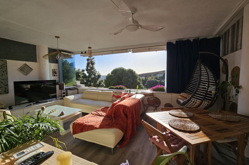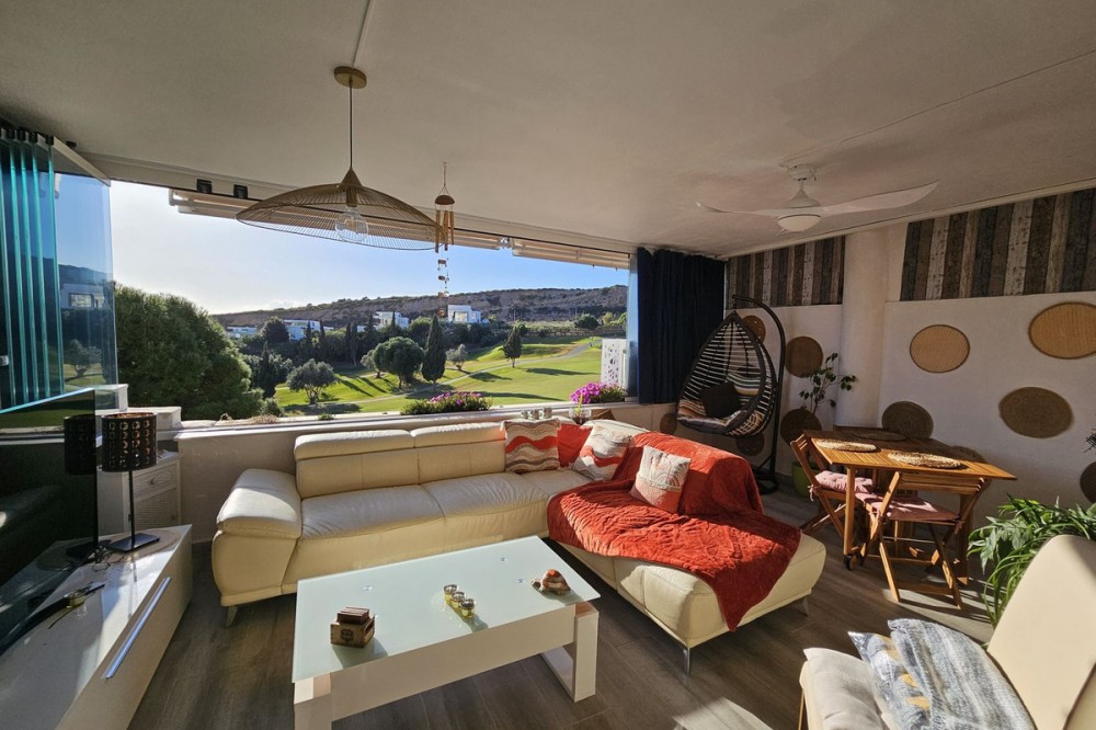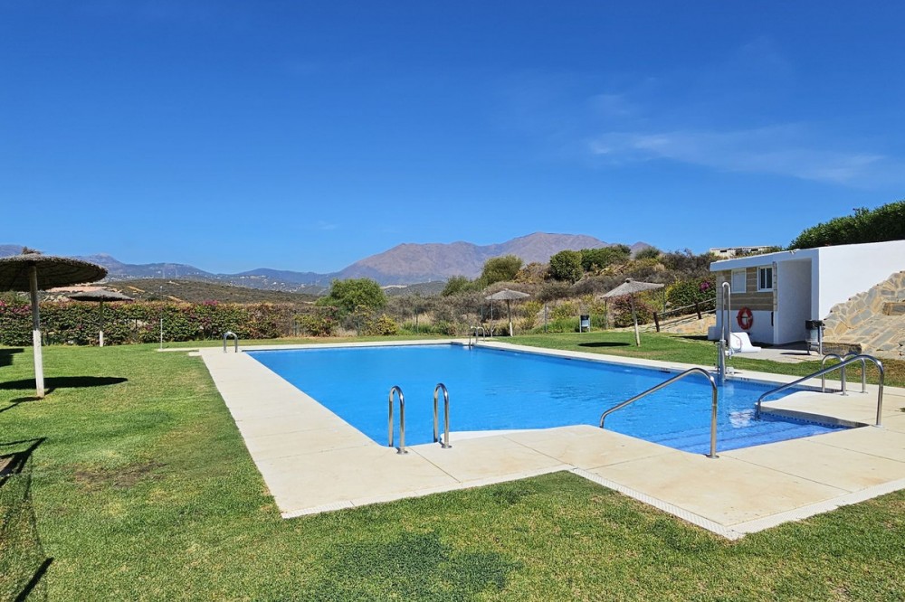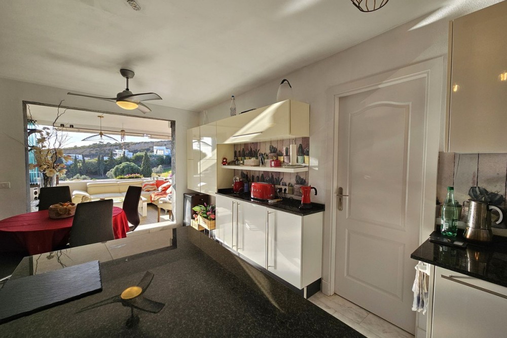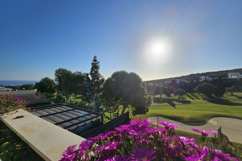 - This 4 bedroom, golf front apartment has the most beautiful views thanks to its impressive location within the Doña Julia Golf resort in Casares Costa. This south west facing apartment is bright with a fantastic open plan kitchen and island. The master bedroom has an en suite bathroom while the other 3 rooms share a full family bathroom. The lovely bright sitting room and terrace overlook the golf greens offering exceptional views spanning all the way down to the sea and up across the surrounding countryside and mountains. This property is being sold with an underground parking space included in the price. The current owner has installed glass curtains on the terrace allowing the terrace to be used as a closed sitting room in the winter and an open terrace in the summer. There is hot and cold A/C in the sitting room and main living area while all the other bedrooms have fans for the summer. Location wise this property is nestled between the world famous, 5 star Hotel, and exclusive golfing estate, Finca Cortesin, and the beautiful golf course of Doña Julia. You can access the apartment via either approach, both of which are gated with security barriers, cameras and security guards. The gated urbanisation itself is quiet with a good mix of nationalities and is very family orientated. Only a couple of kilometres from the beach, the area allows for breath-taking views and peace and quiet yet only a 5 minute car ride will take you to town and the beach where you will find a great variety of beach bars, restaurants, supermarkets....everything a town has to offer. Rentals are also very successful in this urbanisation which makes this property a good rental investment. In short, this property offers a lot. An ideal place to live, in a community with well maintained tropical gardens and communal pool. Low running costs: Community fees:€90/month, IBI and Rubbish €521. All the blocks are currently being updated and painted white. THIS AN EXCELLENT INVESTMENT OPPORTUNITY. Viewing highly recommended.