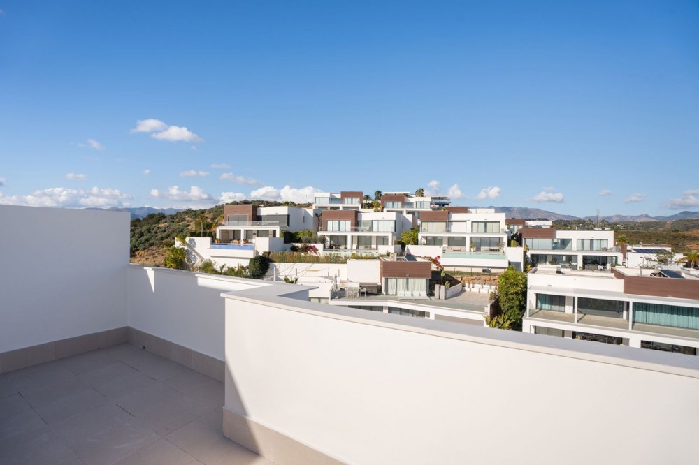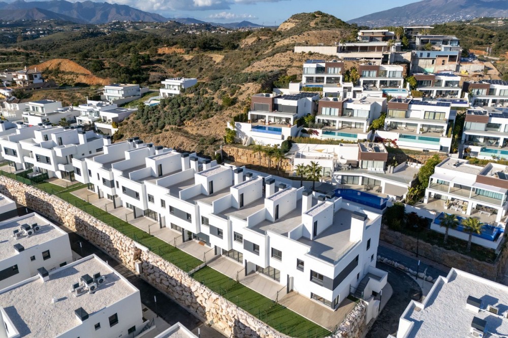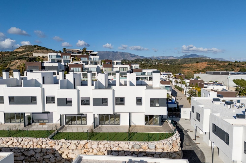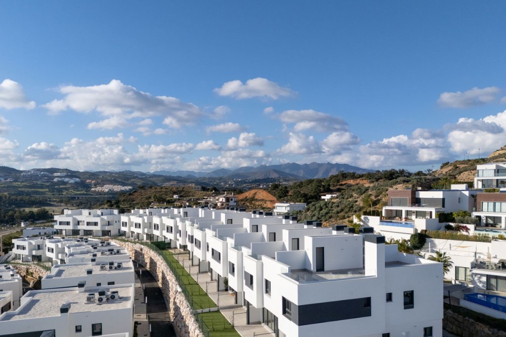 - Stunning 4-Bedroom Corner Townhouse in Serena Village, La Cala de Mijas Welcome to this exceptional 4-bedroom, 3-bathroom corner townhouse in Serena Village, one of the most sought-after gated urbanizations in the heart of La Cala de Mijas. Recently completed, this development offers an unrivaled blend of cutting-edge design, top-tier materials, and luxury finishes. Situated on the higher levels of the urbanization, this home enjoys panoramic sea views from every level, culminating in an expansive rooftop solarium where you can soak in the vistas while basking in the sun. As a corner townhouse, this property enjoys unparalleled privacy, with only one neighboring home, ensuring peace and tranquility throughout. The spacious open-plan living area is bathed in natural light, creating a warm and welcoming atmosphere, ideal for both relaxing and entertaining. The modern kitchen flows seamlessly into the living and dining spaces, perfect for family gatherings or hosting guests. The townhouse features four generously sized bedrooms, including a luxurious master suite with its own private en-suite bathroom. Each of the three bathrooms is equipped with high-end fixtures, and the attention to detail in every corner of the home reflects the quality craftsmanship throughout. One of the key highlights of Serena Village is its fantastic communal areas, designed to enhance your lifestyle and offer convenience and comfort. The beautifully landscaped spaces create an inviting environment, complemented by a sparkling swimming pool, fully-equipped gym, sauna, and gourmet social room perfect for socializing and unwinding with family and friends. For those who enjoy the vibrant lifestyle of La Cala de Mijas, this townhouse offers the ideal location just a short 5-minute stroll to the village center and its charming selection of cafes, restaurants, shops, and one of the most stunning beaches along the coast. Due to its very popular location this property will have an excellent investment opportunity. Whether you seek a peaceful retreat or a home close to all the action, this corner townhouse in Serena Village is the perfect balance of both, offering luxury, convenience, and comfort in one of the most desirable locations on the Costa del Sol.
