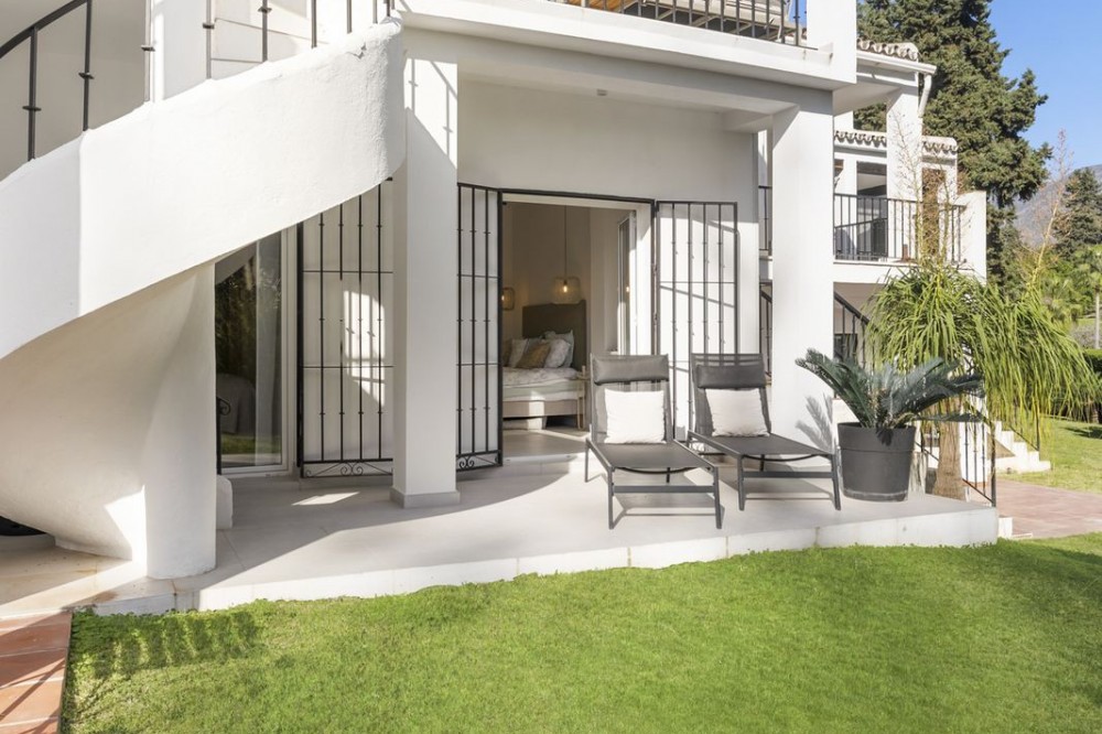• Amazing townhouse (4 Bed) in Aloha Golf-Marbella Welcome to this stunning semi-detached duplex-style home, located in the heart of the golf area, with direct views of Aloha Golf (in the La Retranca urbanization, with an amazing communal pool). The location is perfect: just a short distance from the prestigious Aloha College, all essential amenities, the sea, and the vibrant Puerto Banús. Here, you’ll find the perfect balance between tranquility and all the charm this area has to offer! Spacious and well-designed living areas The home is spread over two levels. On the upper floor, you’ll find two bedrooms, offering plenty of space for your family, guests, or even a home office. The living and dining areas have access to a spacious terrace facing south-southwest, featuring a barbecue and a relaxing lounge area, ideal for enjoying the outdoors. On the lower floor, there are three additional bedrooms, both with direct access to a landscaped garden with a terrace, perfect for soaking up the sun and enjoying the green surroundings. A comfortable and unique lifestyle, A must see !!! This property is more than just a house; it’s a place where you can enjoy a comfortable and practical lifestyle, with all amenities within easy reach. Call us quickly to arrange a viewing—we have the keys in the office!