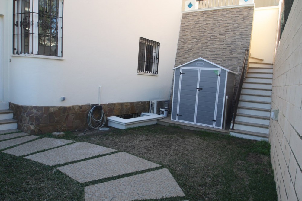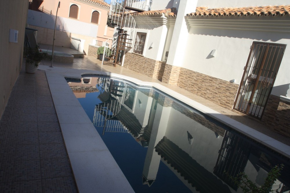 - Discover your oasis on the Costa del Sol! This spectacular detached villa in the sought-after area of Cortijo de Torrequebrada, Benalmádena, offers the perfect balance between luxury and comfort. Just 400 meters from the idyllic Sunset Beach, this property places you close to supermarkets, restaurants, and all the services you may need. Built in 2008 and in excellent condition, the home is spread over three levels. On the first floor, enjoy a spacious living room, a fully equipped kitchen, a cozy bedroom, and a terrace with direct access to a private pool. Unwind in the hydromassage bathroom after a day in the sun. The second floor features the master bedroom with an en-suite bathroom and walk-in closet, along with two additional bedrooms and another bathroom with a shower. The basement is a versatile space with a multipurpose room, two additional rooms, a bathroom, and a large garage. Additionally, the 45 m² solarium is the ideal spot to enjoy the Mediterranean climate. With 234 m² of built space and 136 m² of usable area, this villa offers more than enough room for the whole family. The 500 m² plot ensures privacy and tranquility. Facing south and east, it takes full advantage of natural light throughout the day. Don’t miss the opportunity to live in this coastal paradise with all modern conveniences. Come and see it!