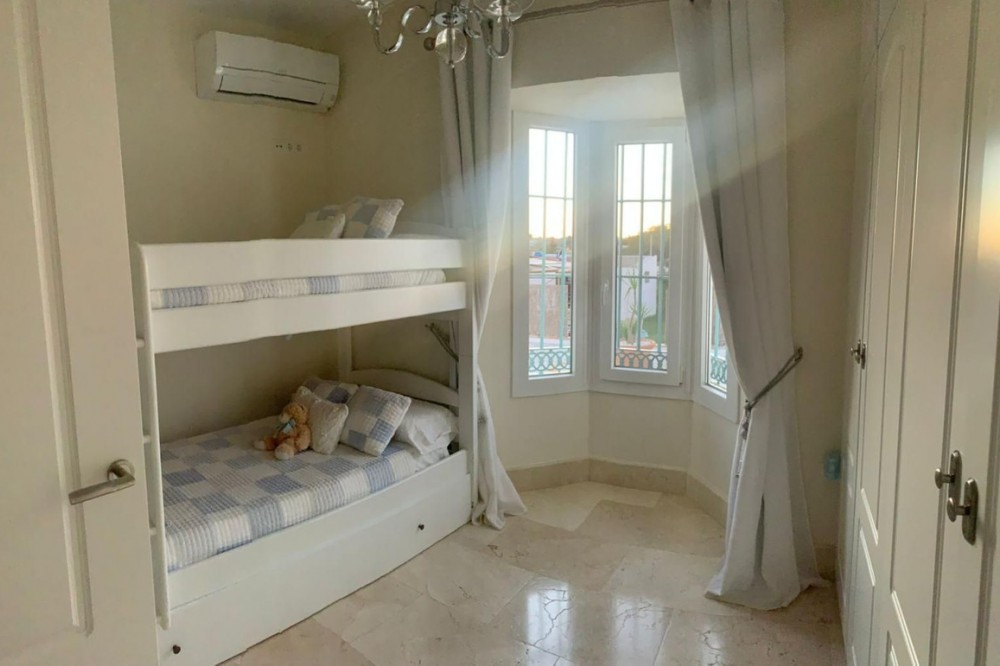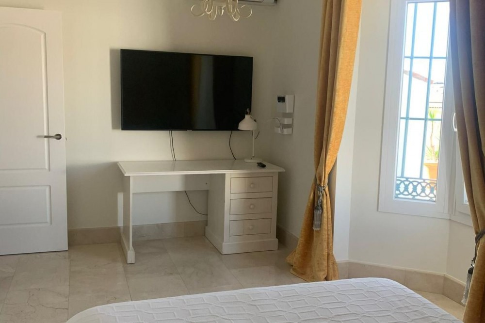 - Elegant five bedroom villa located in San Roque, Cadiz. Within just a short drive of Gibraltar and the stunning coastline of Cadiz. This property is surrounded by tranquil countryside yet within just a short drive of local amenities. Distributed across one level with high quality finishes and furnishings throughout and newly reformed classically styled kitchen and bathrooms. Upon entry to the villa you are greeted with a beautiful entrance hall with access to the spacious and bright living and dining area leading onto the large private garden, BBQ and entertainment area which boasts peaceful views towards the surrounding countryside. Large and modern kitchen with a further dining area, five well sized bedrooms with fully fitted wardrobes, the master bedroom with modern en-suite bathroom. Hot and cold air conditioning throughout and a fireplace in the living area. Ample parking for several cars within the villa.