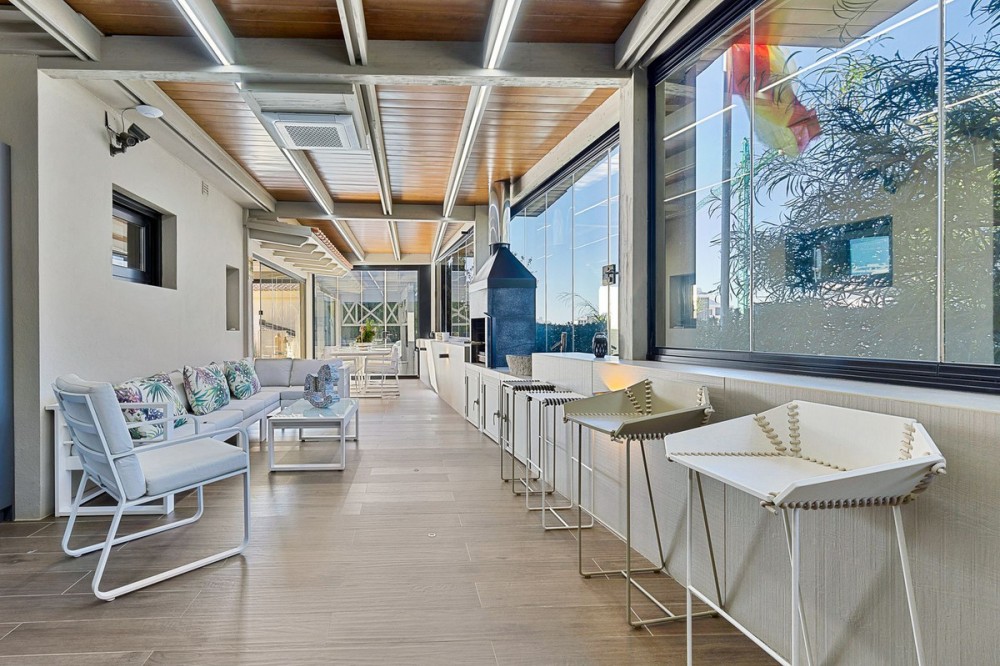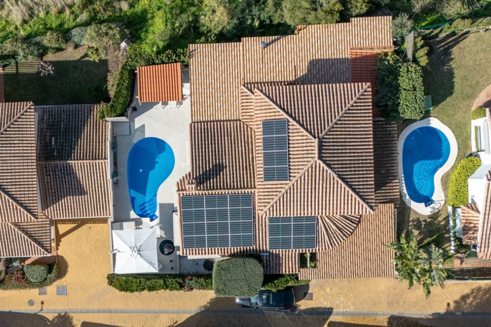- ✨ 235 m² built + 80 m² enclosed terrace | 591 m² plot | Private pool | Views of the Bay of Fuengirola ✨ Discover this spectacular detached villa, a true gem of design and comfort in the exclusive Higuerón area of Benalmádena. Completely renovated in 2017, this property combines spacious interiors, high-quality finishes, and a privileged location, just 1 km from Carvajal Beach. ???? Villa Layout: Main Floor: ✅ Modern open-plan kitchen, fully equipped. ✅ Spacious living room with a built-in fireplace. ✅ Office (which can be converted into a third bedroom). ✅ Guest toilet. ✅ Bedroom with an en-suite bathroom. Upper Floor: ✅ Master suite of 56 m² with a stylish en-suite bathroom and mirror-effect ceiling. ???? Outdoor Spaces: ✔ Private pool with shower. ✔ Chill-out area with pergola, sun loungers, and a decorative fountain. ✔ Enclosed terrace with Lumon glass, perfect for year-round use. ✔ Barbecue area with toilet and storage room. ✔ Closed garage and covered parking area. ???? Extras & Features: ✔ Central air conditioning + individual units in bedrooms. ✔ 22 solar panels for maximum energy efficiency. ✔ 6,000-liter water storage tank. ???? Prime Location: ???? Situated in Higuerón, one of the most sought-after areas on the Costa del Sol. ???? Just minutes from the Higuerón Shopping Center (Carrefour, pharmacy, restaurants, and shops). ???? Only 1 km from Carvajal Beach. ???? Quick access to the A7, excellent connections to Málaga and Marbella. ???? Quiet and secure area, ideal for living or investment. ???? Costs: ???? IBI (Property Tax): €870/year. ???? Community Fees: €92,5/month. ???? Contact us for more information and a private viewing! In compliance with Decree 218/2005, of October 11, which regulates consumer information in property sales and rentals in Andalusia, we inform clients that notary fees, registry fees, I.T.P., financial costs, and other purchase-related expenses are not included in the price. The information provided in this advertisement is for guidance only, is non-binding, and has no contractual validity.