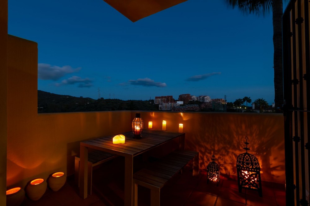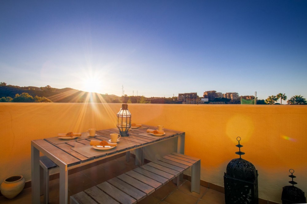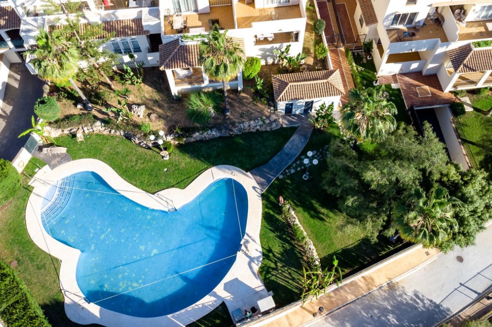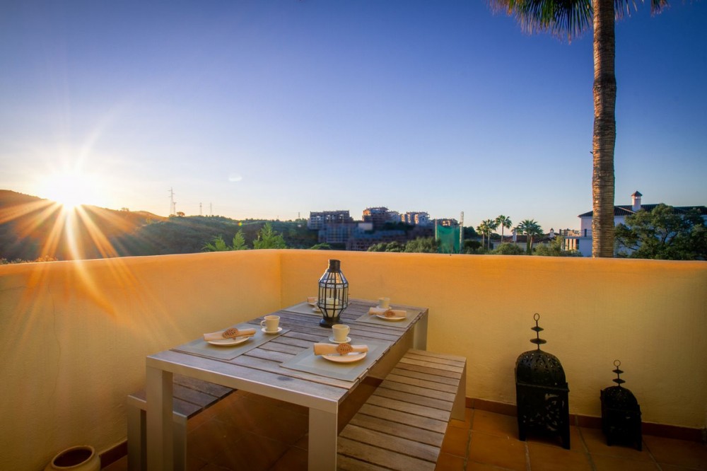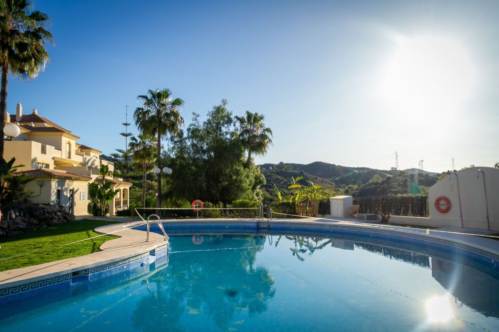 - Exclusive property situated in one of the most prestigious areas of Elviria. Located just a few steps away from a stunning golf course, which can be admired in its entirety from the terrace. This 2 bedroom, 2 bathroom flat is in an unbeatable location, with quick access to supermarkets, schools, the beach and main transport links. It stands out for its peaceful setting, surrounded by nature and large green areas, providing a perfect space for relaxation and enjoyment. Thanks to its excellent orientation, it enjoys exceptional luminosity throughout the year, with mild temperatures in any season. It is an ideal option for both investment and permanent residence. The property includes private parking and storage room. The development offers a large swimming pool available all year round and carefully designed gardens. In addition, the apartment has LPO, tourist license and is delivered fully furnished and equipped.