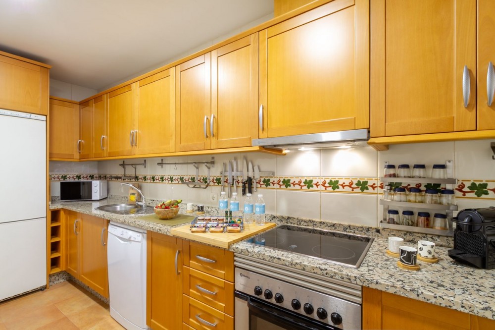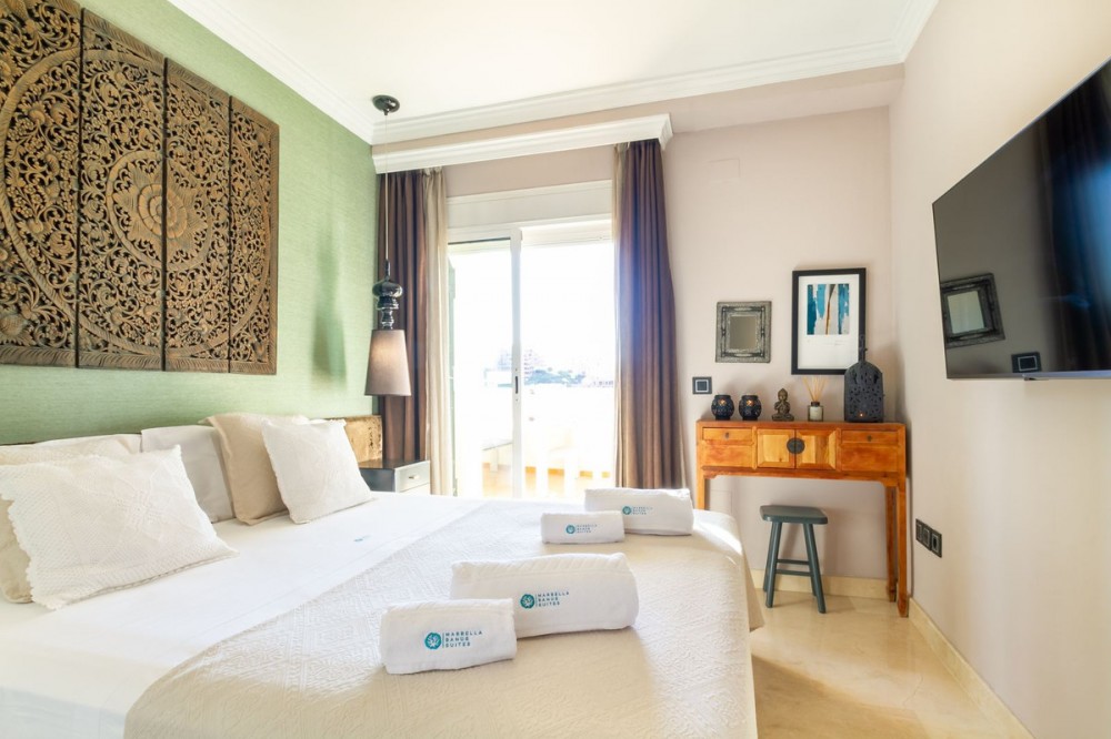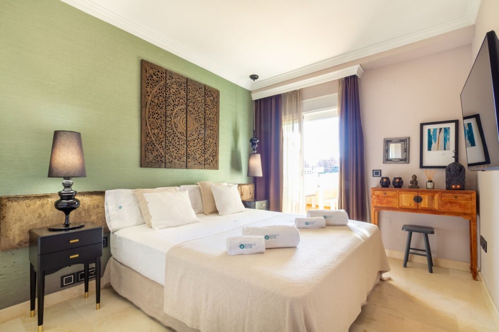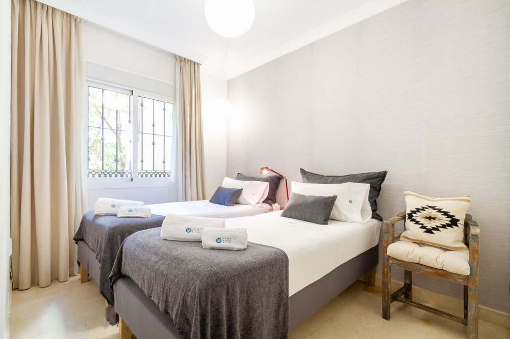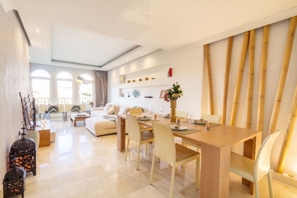 - Exclusive property situated in one of the most prestigious areas of Elviria. Located just a few steps away from a stunning golf course, which can be admired in its entirety from the terrace. This 2 bedroom, 2 bathroom flat is in an unbeatable location, with quick access to supermarkets, schools, the beach and main transport links. It stands out for its peaceful setting, surrounded by nature and large green areas, providing a perfect space for relaxation and enjoyment. Thanks to its excellent orientation, it enjoys exceptional luminosity throughout the year, with mild temperatures in any season. It is an ideal option for both investment and permanent residence. The property includes private parking and storage room. The development offers a large swimming pool available all year round and carefully designed gardens. In addition, the apartment has LPO, tourist license and is delivered fully furnished and equipped.