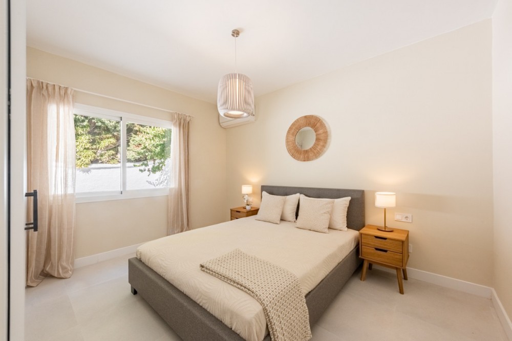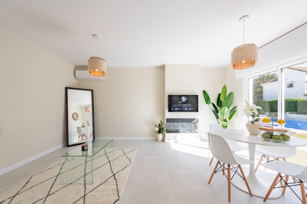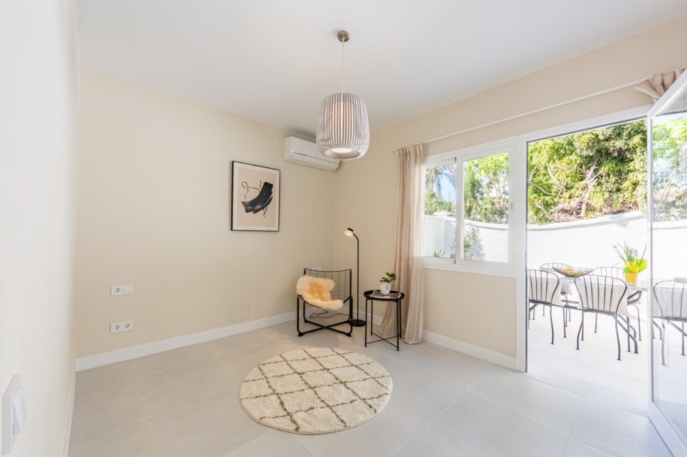 - Renovated Beachside Gem – Villas 11, Cortijo Blanco Just 600 m from the beach, this beautifully renovated apartment offers the perfect blend of coastal charm and modern comfort in one of Marbella’s most desirable areas. The property features two bright bedrooms with built-in wardrobes, a modern bathroom, and a new open-plan kitchen seamlessly connected to the living and dining area. Enjoy your own private patio, ideal for relaxing or entertaining under the Andalusian sun. Located in an exclusive community of only 11 bungalow-style homes, the residence includes a large communal pool, lush gardens, and a private carport. A move-in-ready home by the sea — combining style, convenience, and a truly privileged location in Cortijo Blanco.