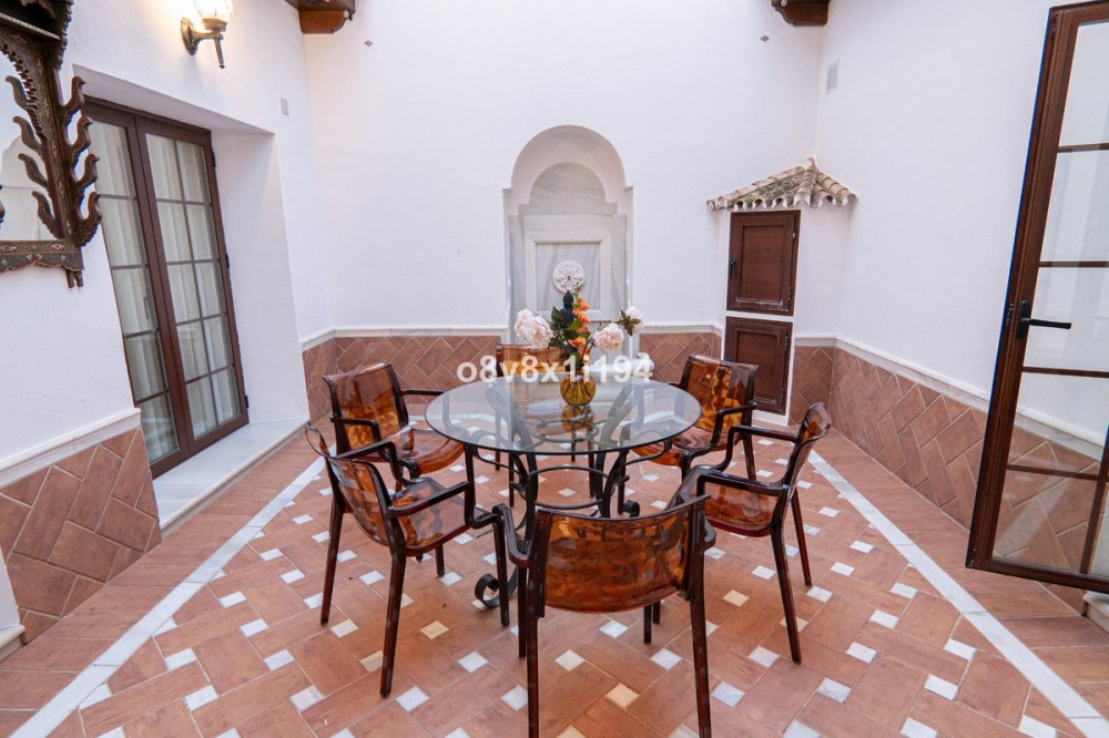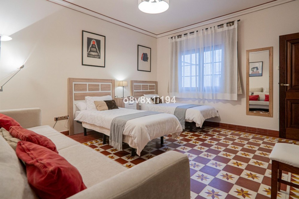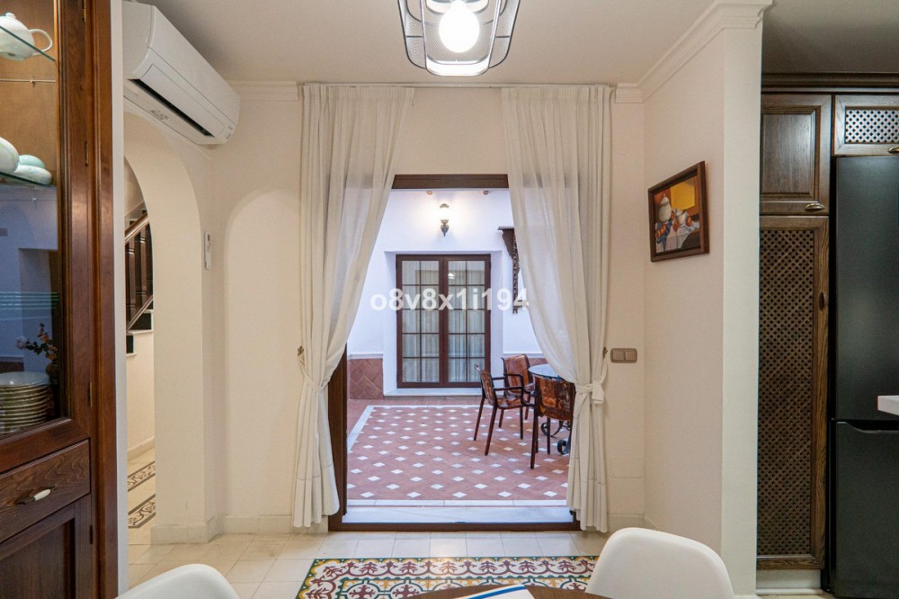 - I want to introduce you to this beautiful 19th century house in the heart of Fuengirola. Completely rehabilitated respecting its origin and its patio, which give an exclusive personality to this home. Close to the entire leisure area, bars and commerce in the area, but without any type of noise or traffic. Semi-pedestrian street. 200m from the beach. It has luxury construction qualities that stand out at first glance. It has 5 bedrooms, 3 bathrooms, a toilet and a laundry room. The living room occupies 40m2 and has a perfectly functioning century-old fireplace. Large windows and imitation wood doors lead you to the wonderful Sevillian-style central patio and provide great light to the entire home. The patio railings are from the 18th century, unwelded and rehabilitated, and in the upper part a coffered ceiling made of carved Teak wood, specially designed for this property. Oak wood kitchen equipped with Macael marble countertop and sink. All rooms have built-in wardrobes, air conditioning, underfloor heating with tiles of different Sevillian style designs, tilt-and-turn windows with climalit and safety glass. On the second floor there is also a terrace and storage space. The master bedroom has a beautiful mahogany dressing room and an en-suite bathroom with a shower and a whirlpool bath. The doors are solid mahogany with designer lintels. The house has a custom hand-carved wooden staircase made of tropical wood called serengueira (harder than iroko). As you can see, everything is full of details and with extraordinary qualities, to generate a feeling of well-being and comfort. It has a vacation license, which is an added value if you want to make it profitable as a business. Fuengirola offers If you want more information, contact me, it will be a pleasure to assist you.