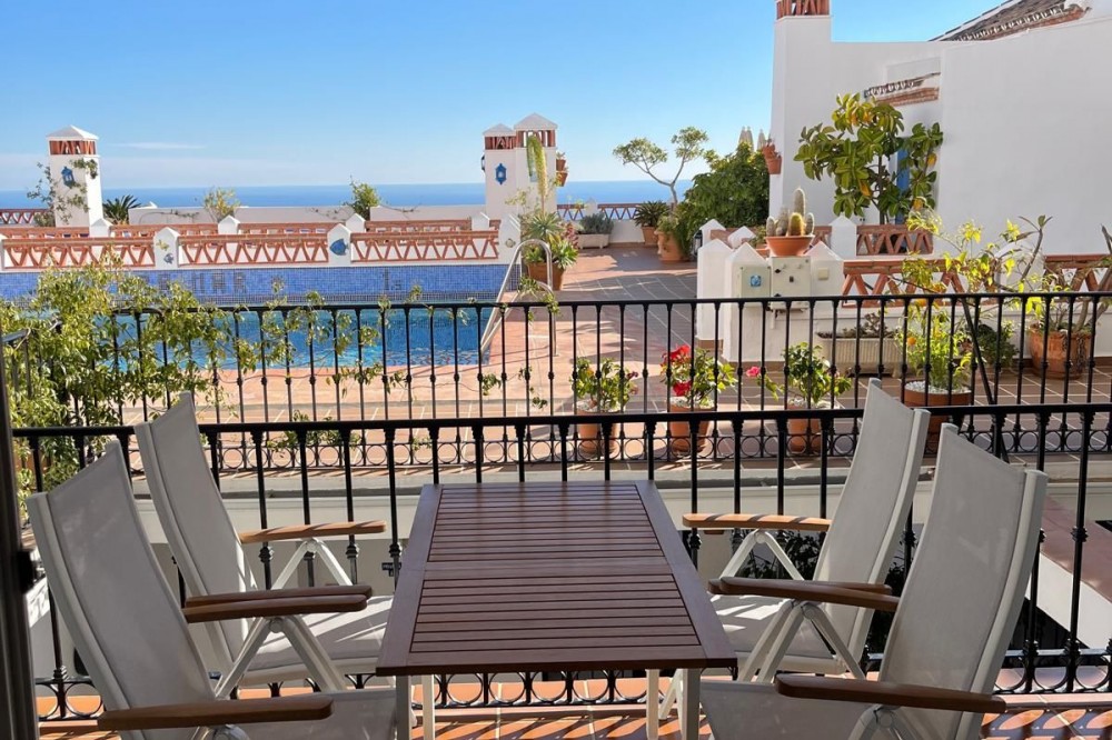 - With touristic license Extremely spacious 1 bed apartment in the middle of Mijas Pueblo with sea views, and communal pool the apartment is large enough to swap the kitchen into an additional bedroom and put in the lounge area to make open plan, access onto private terrace overlooking the pool area for the community Situated in the heart of the village makes this a perfect holiday home or rental property Ground Floor Apartment, Mijas, Costa del Sol. 1 Bedroom, 1 Bathroom, Built 68 m², Terrace 10 m². Setting : Village, Mountain Pueblo, Close To Shops. Orientation : South. Condition : Excellent. Pool : Communal. Climate Control : Air Conditioning. Views : Sea, Pool. Features : Covered Terrace, Fitted Wardrobes, Private Terrace, Ensuite Bathroom, Marble Flooring, Double Glazing. Furniture : Part Furnished. Kitchen : Fully Fitted. Garden : Communal. Security : Entry Phone. Utilities : Electricity. Category : Holiday Homes, Investment.