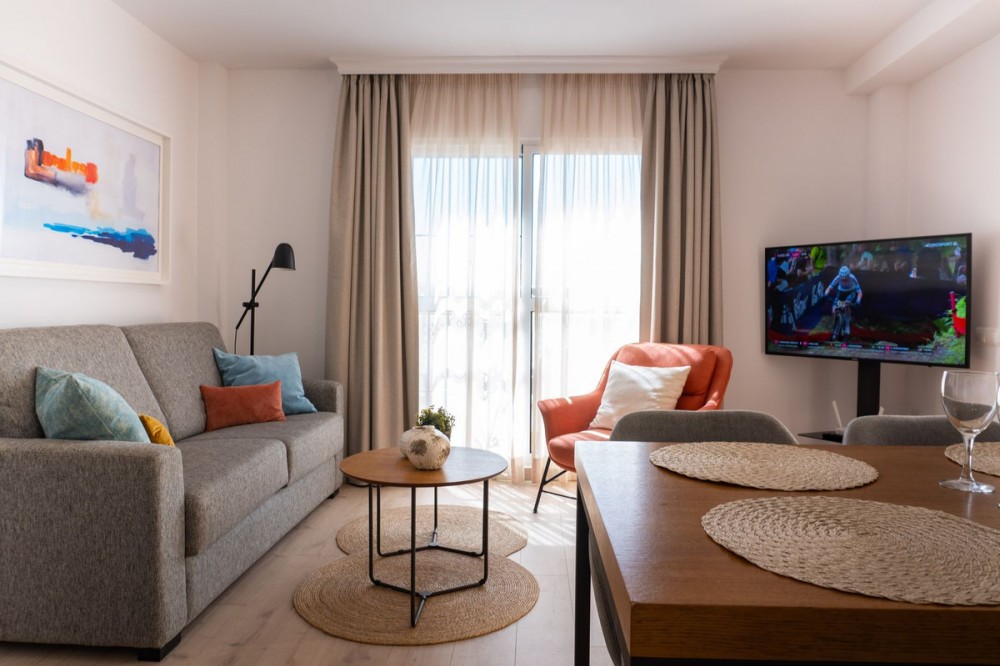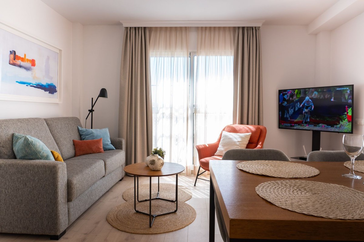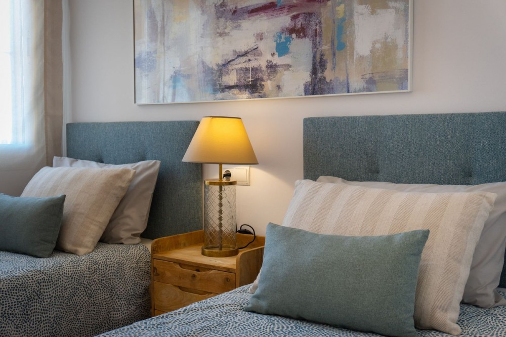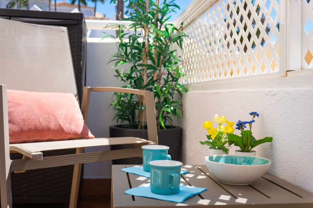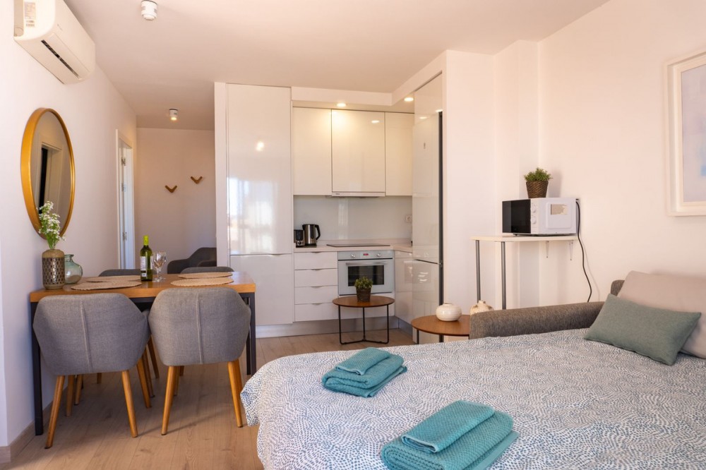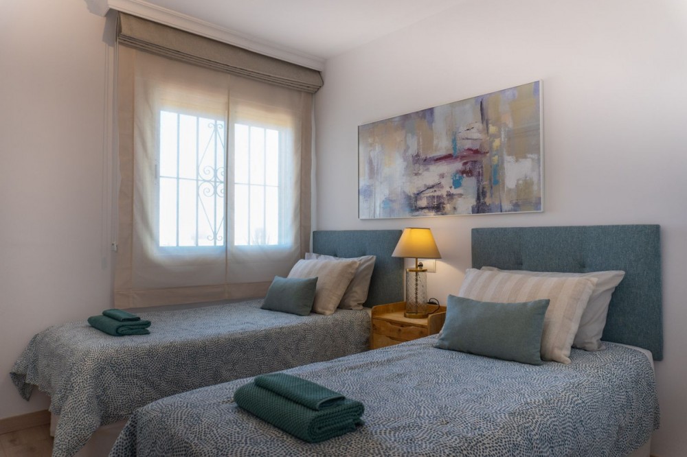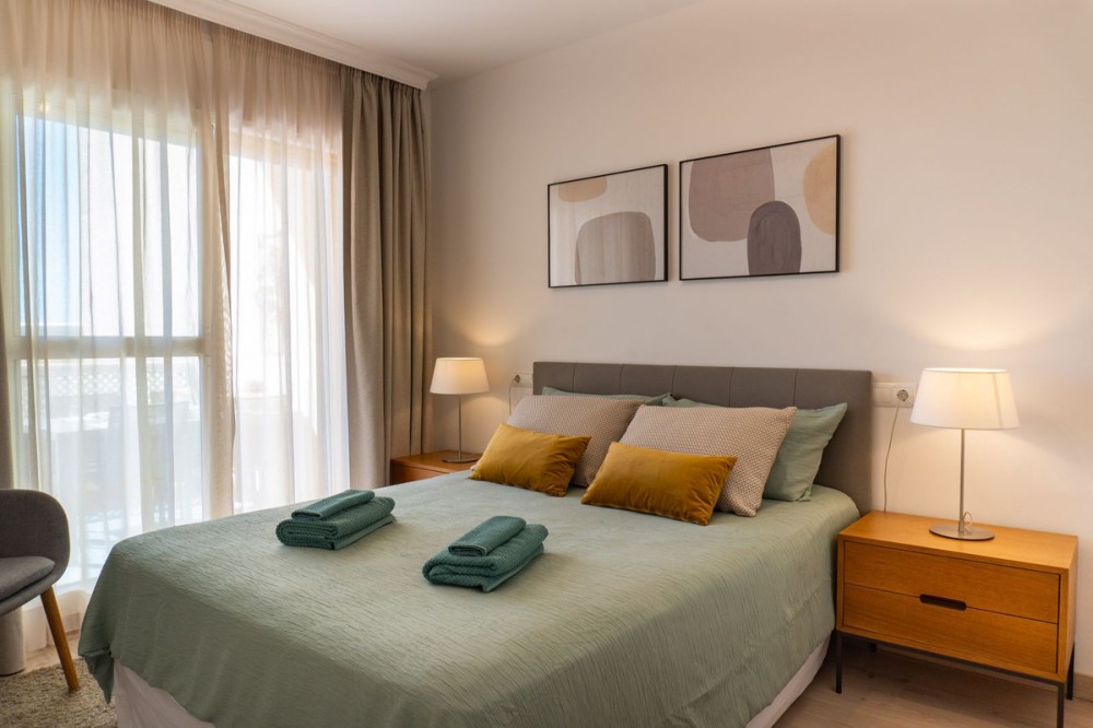 - NO RENTAL LICENSE RESTRICTIONS - GOOD NUMBERS FOR INVESTMENT Second Line from the Beach in a World Class Resort! This recently reformed two bedroom unit is ready to be enjoyed or to be put to work, as it has been recently renovated with great taste and quality and having its touristic license in place. The property is located in the world renowned resort, right outside of the buzzing town of Fuengirola. This location has been a popular and tested destination on the Costa del Sol since the early 1980s. The property is located in the second line from the beaches of Mijas costa with easy access. The few steps lead up to the main terrace at the entrance of the apartment. The terrace can be accessed from the living room through the entrance door and also from the main bedroom. Has plenty of space to enjoy the outdoor living. Entering the bright living room, we already feel at home as the property is decorated with warm colors and great taste. The sofa can comfortably sleep two adults. The modern kitchen and the living space is divided by the dining table giving convenience to the entire space. The kitchen is fully equiped and built by durable and easily cleanable materials. The first bedroom offers plenty of space for two single beds and great storage. The bathroom is also fully fitted with its walk-in shower. At the end of the hallway we find the master bedroom with a large double bed and the large sliding doors giving access to the main terrace and letting light in all day long. This property is ready to rent with its rental history. It is not only great on the inside but the location is ideal as well. On the resort we can find shops, bars, restaurants, car hire services, a small train that takes us around and many more services and amenities. The Communal gated pool is large and has great views to the sea! Get in touch for more info and to book visits